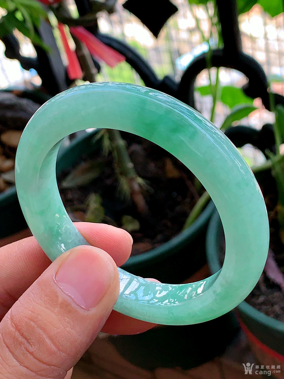 缅甸天然翡翠A货冰透水润飘花宽边手镯56.3圈口