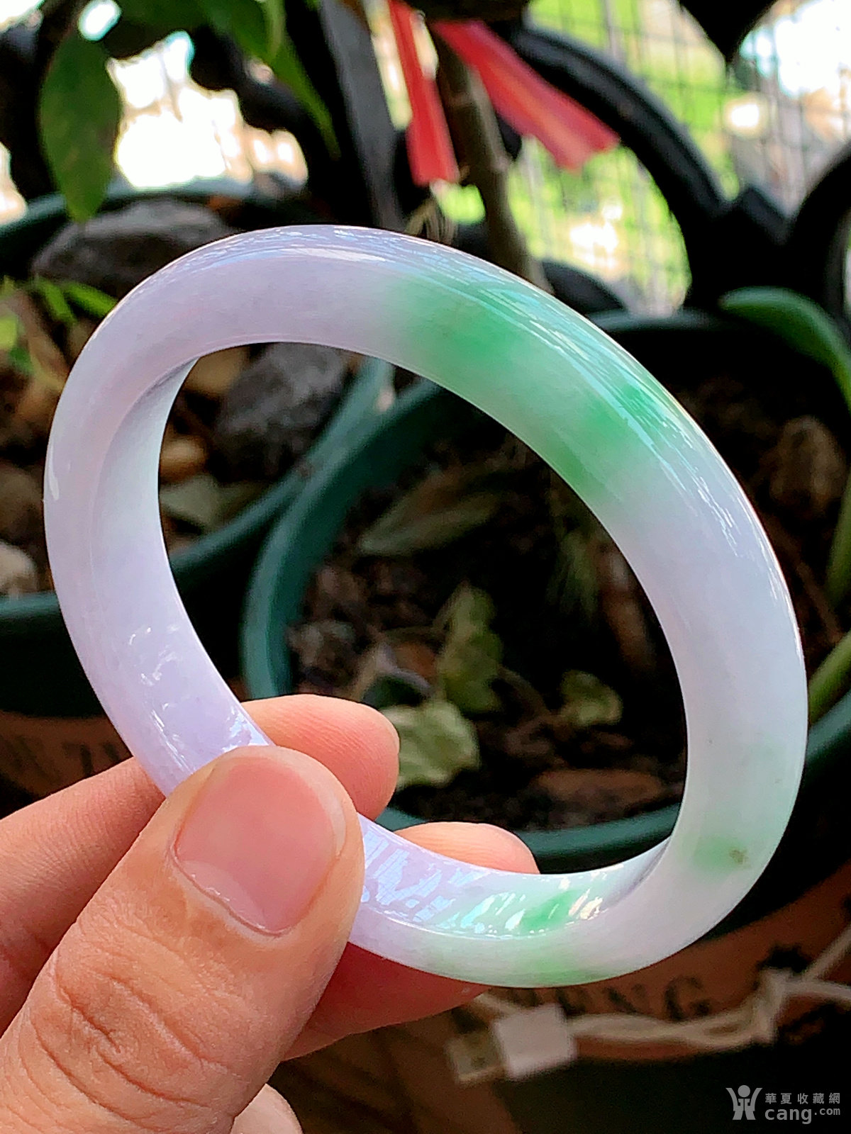 缅甸天然翡翠A货冰透水润春带彩大圈口宽边手镯62.8圈口