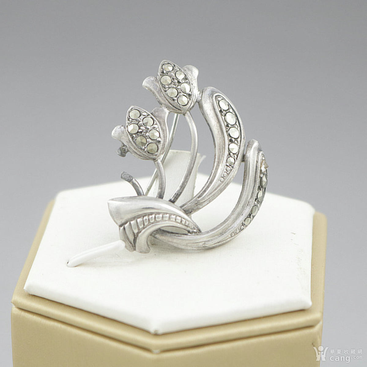 【西洋古董银器/首饰】法国创意花卉造型镶嵌纯银胸针