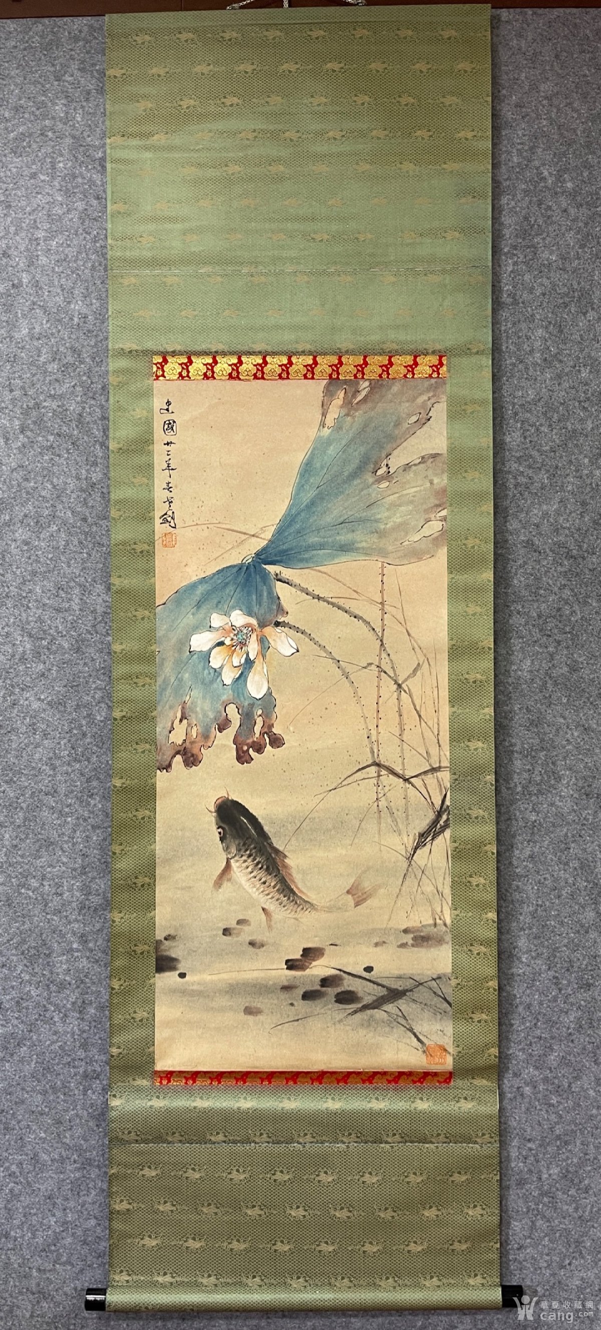 高剑父 荷塘游鱼 日本回流 纸本立轴