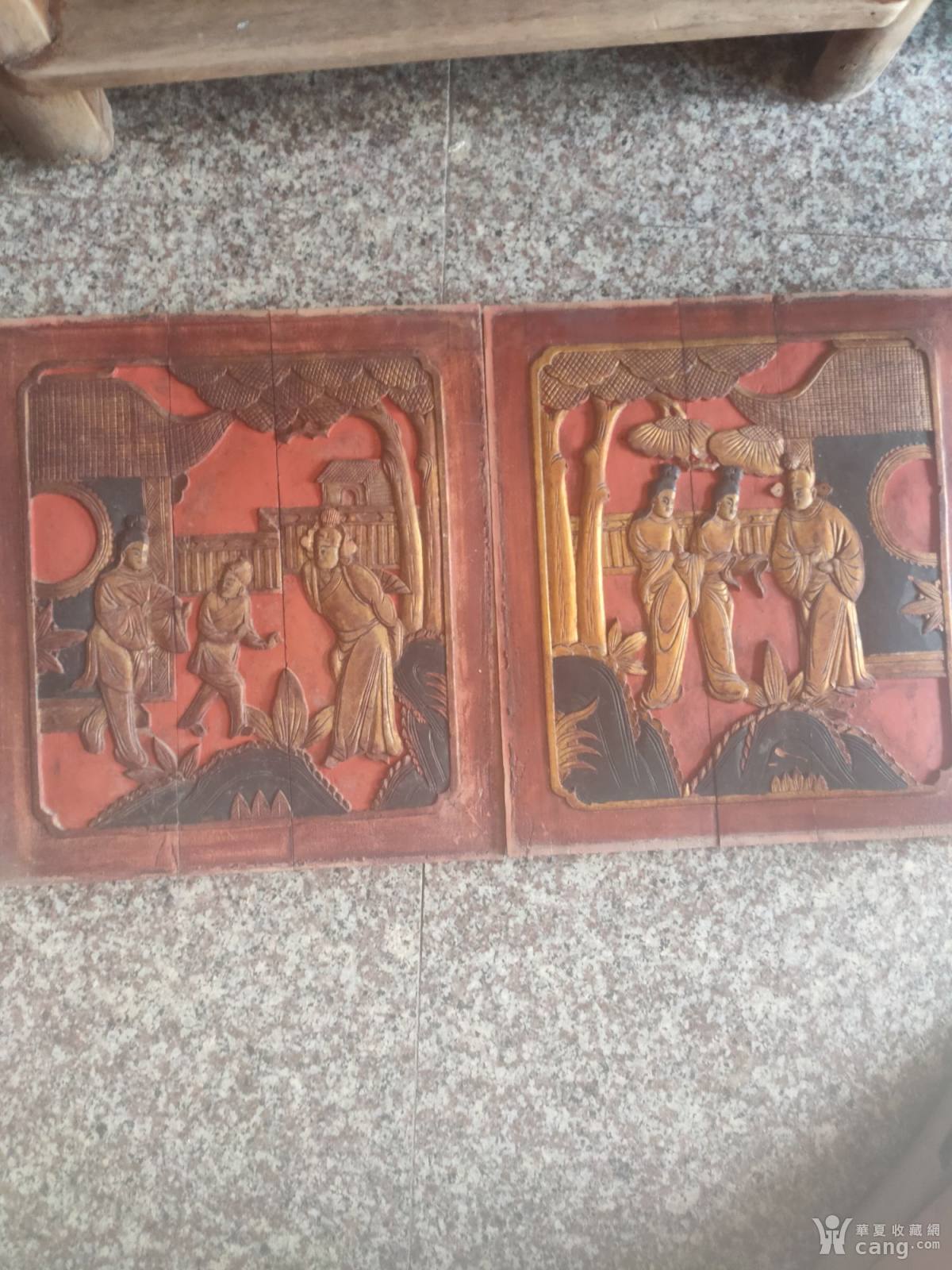 人物木雕花板二片,
