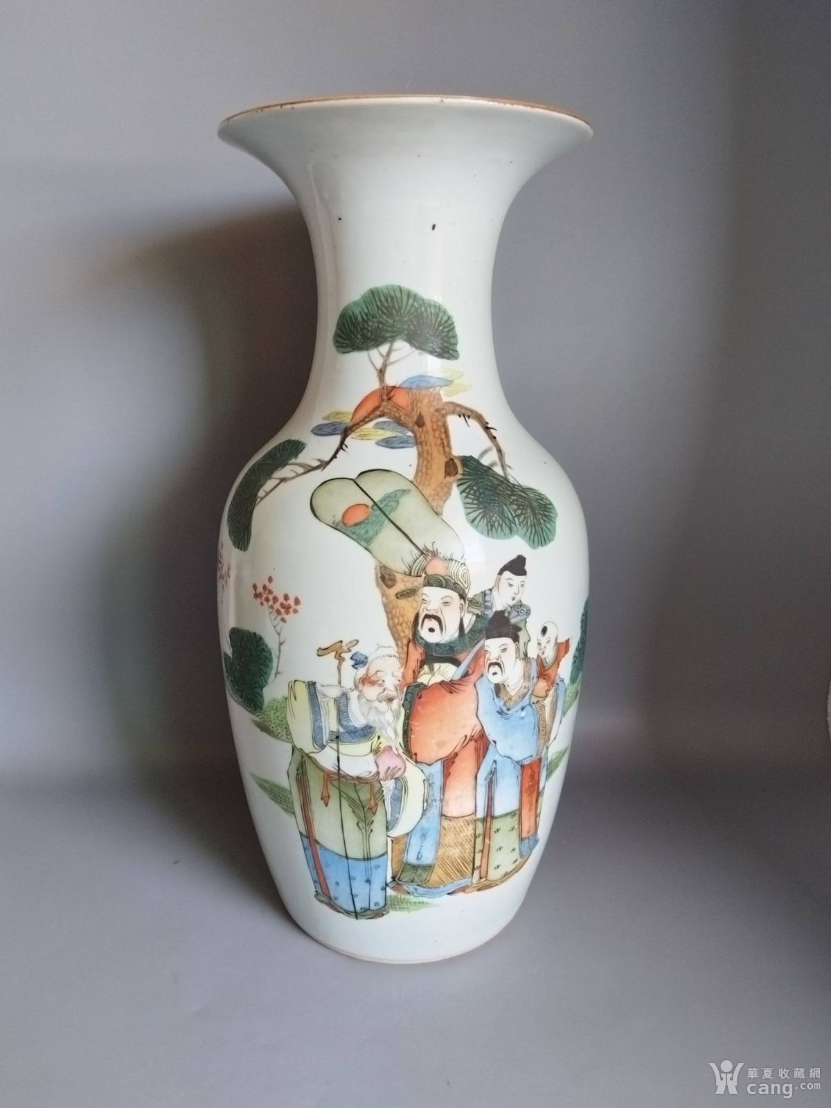 晚清粉彩大人物福禄寿三星报喜罗汉瓶