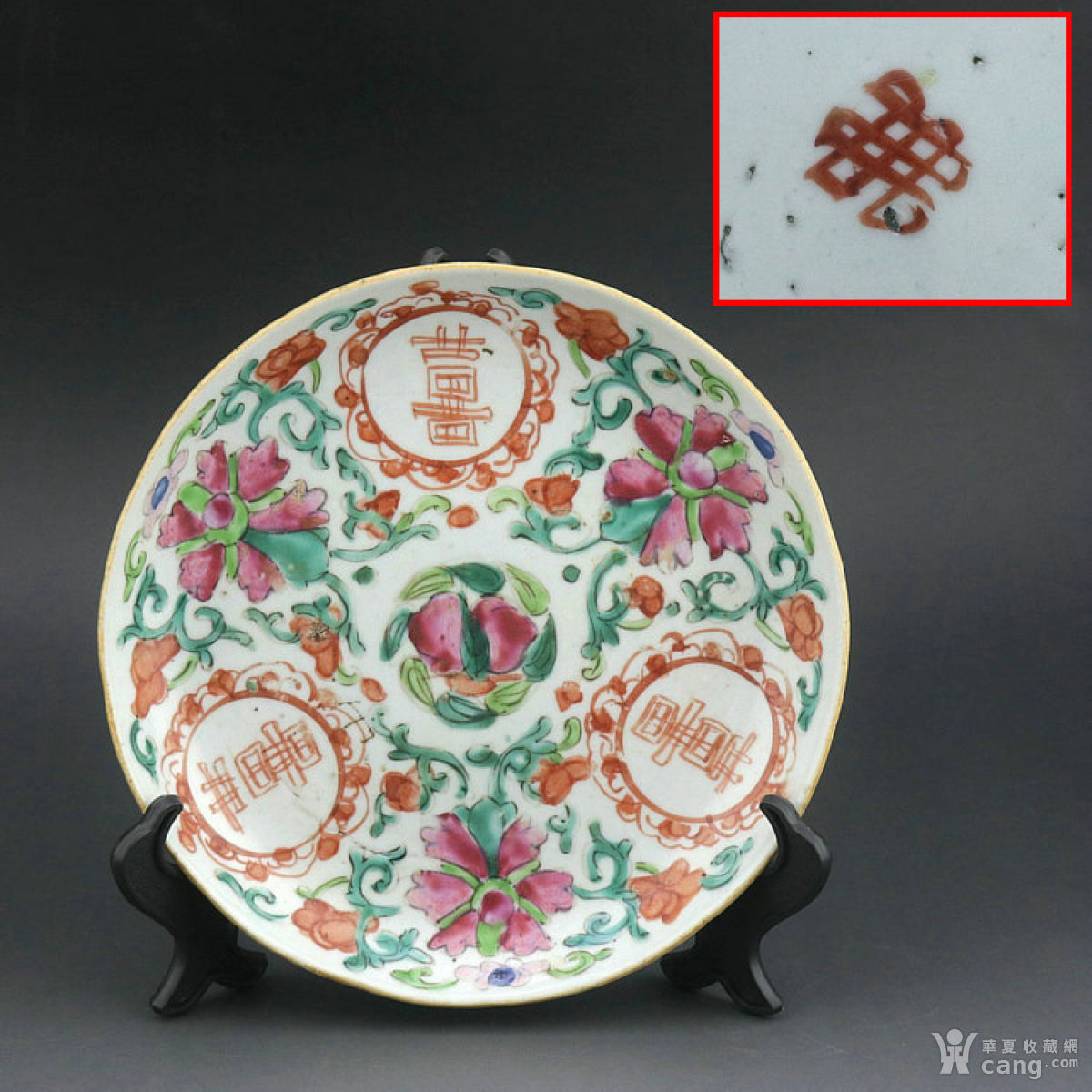 【海外回流】清道光粉彩喜字宝相花福寿瓷盘 赏盘 盘肠款