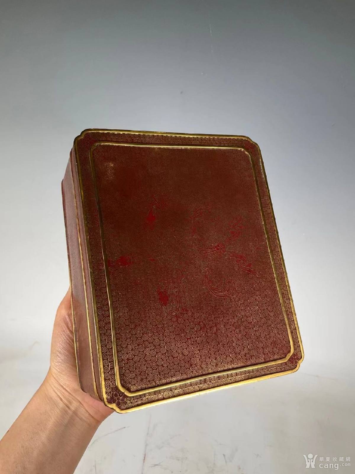 民国景泰蓝红底卷草锦地忍冬青纹盒