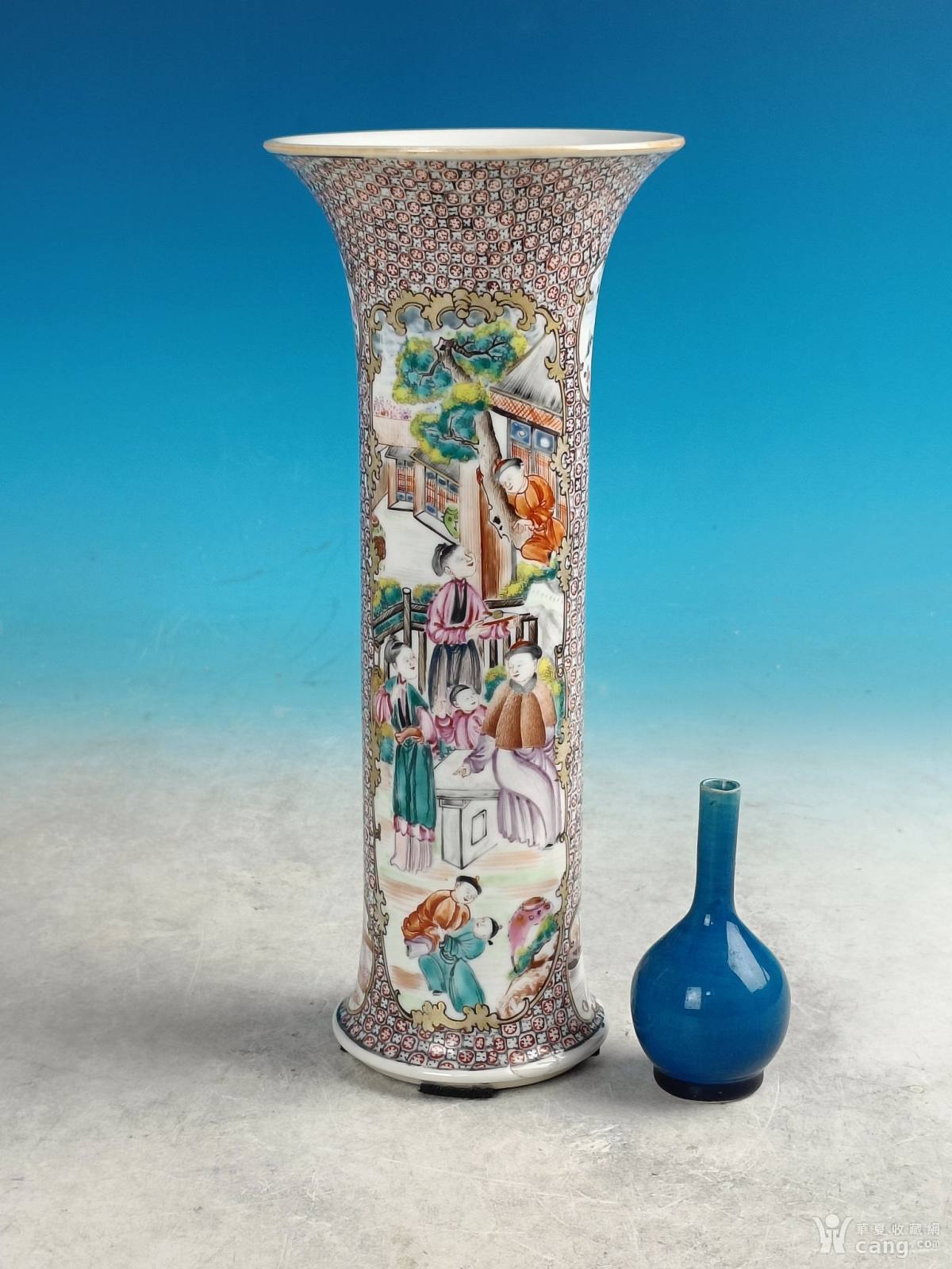 清乾隆粉彩描金锦地开窗″满大人"人物故事纹花觚
