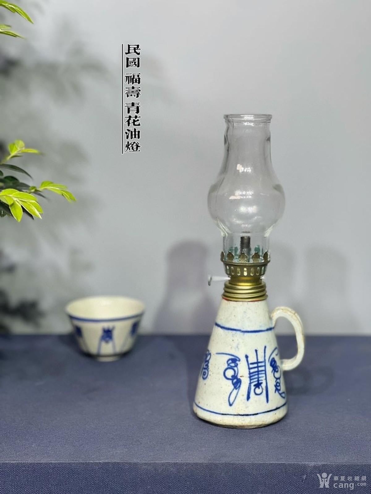 HB9470 民国『福寿双全』青花油灯