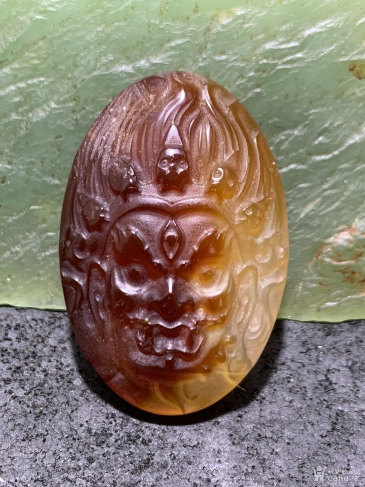精美高玉化巴西玛瑙手工雕刻大黑天吊坠一个!