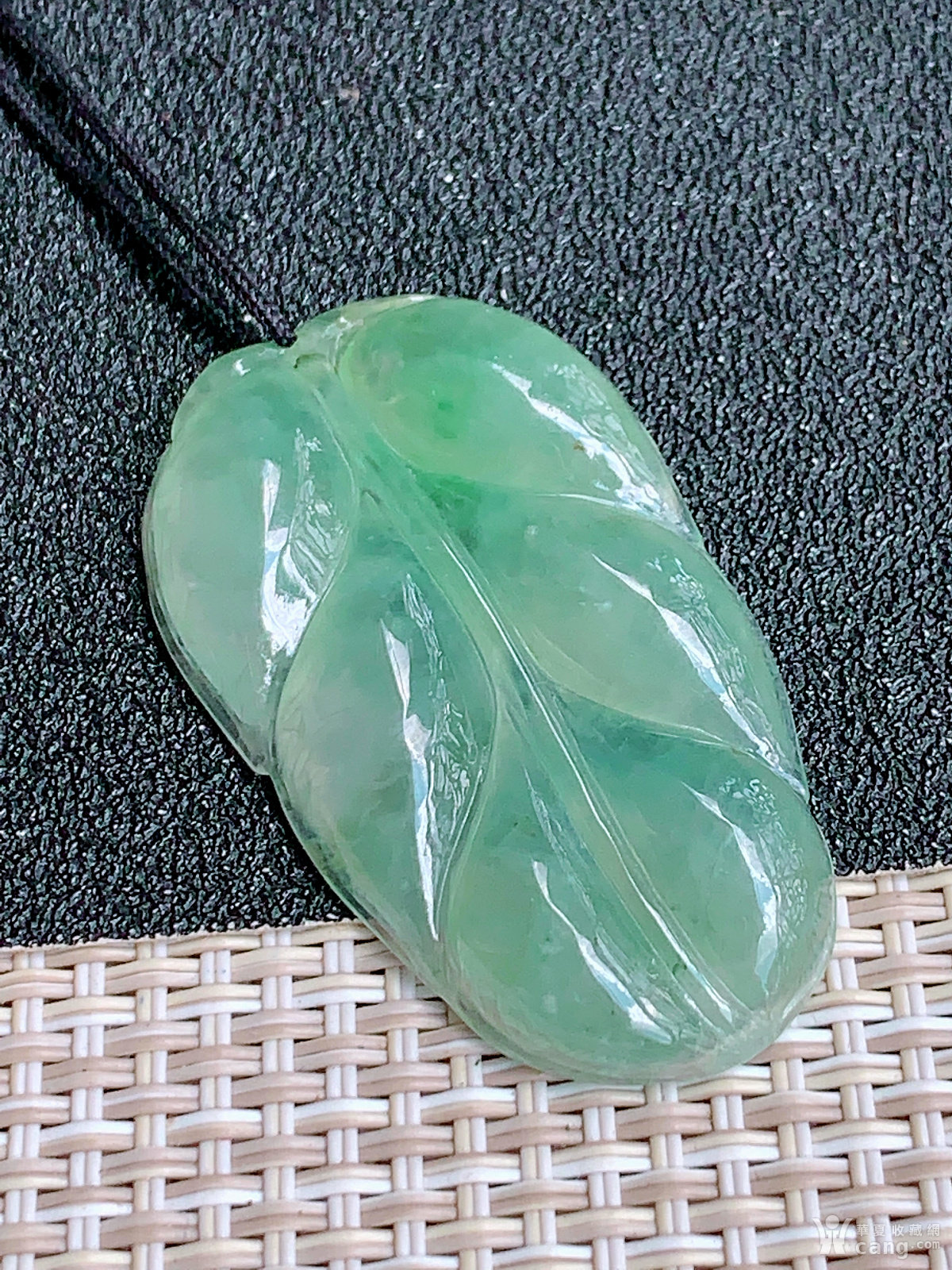 缅甸天然翡翠A货冰透水润飘花金枝玉叶吊坠