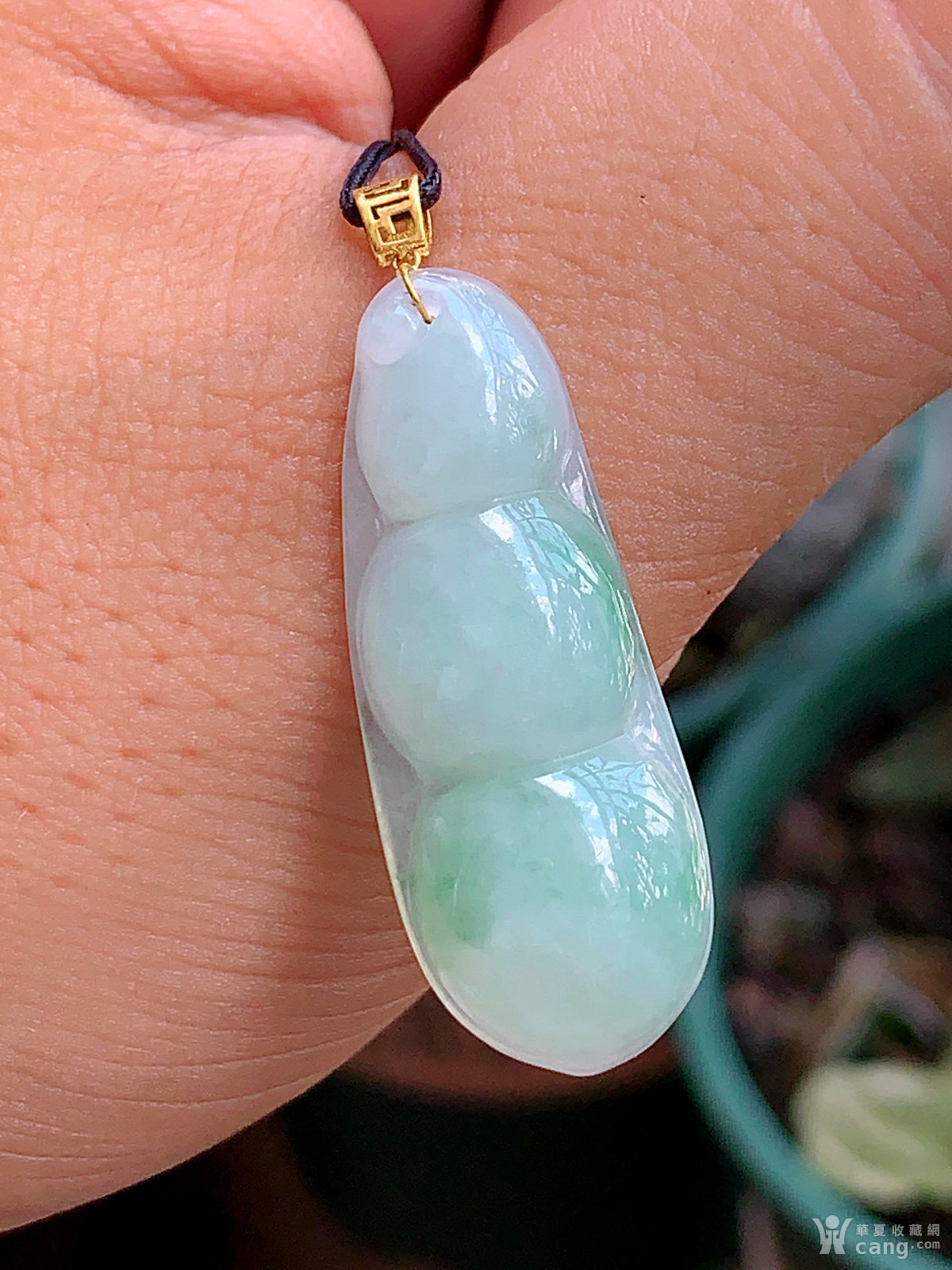 缅甸天然翡翠A货18k金扣冰透水润飘花四季豆吊坠