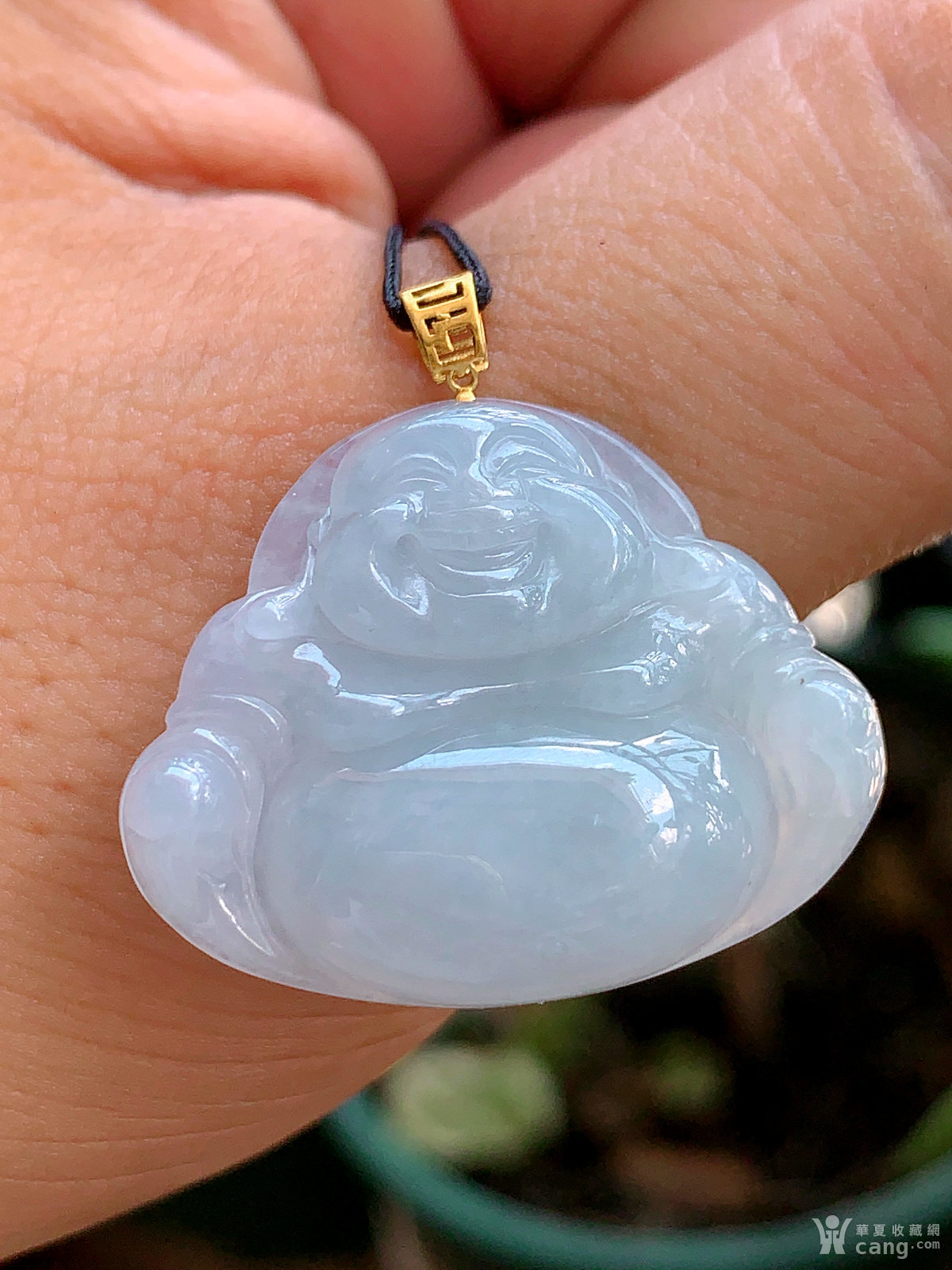 缅甸天然翡翠A货18k金扣冰透水润紫罗兰佛公吊坠