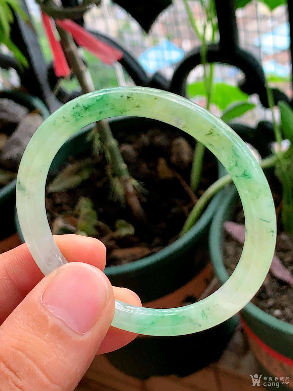 缅甸天然翡翠A货冰透水润黄加绿双彩圆条手镯53圈口