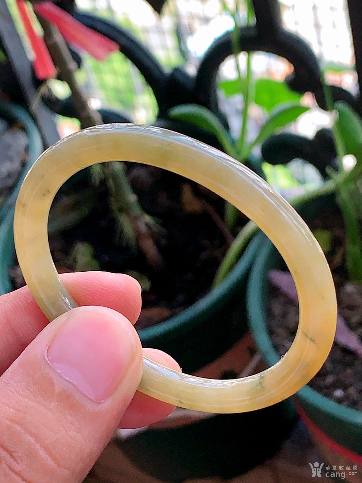 缅甸天然翡翠A货冰透水润黄翡圆条贵妃手镯52.2圈口