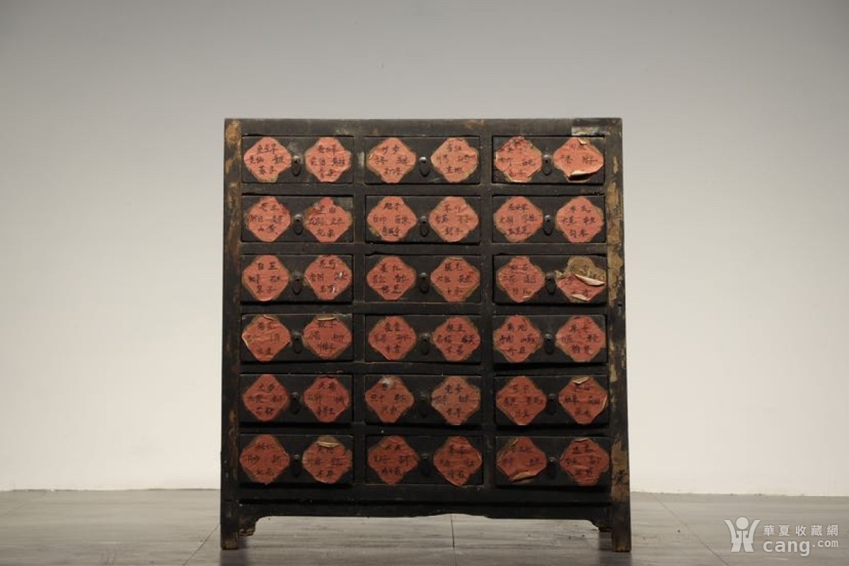 方腿四面平:中药柜 尺寸58-96高102 榆木黑漆 完整清