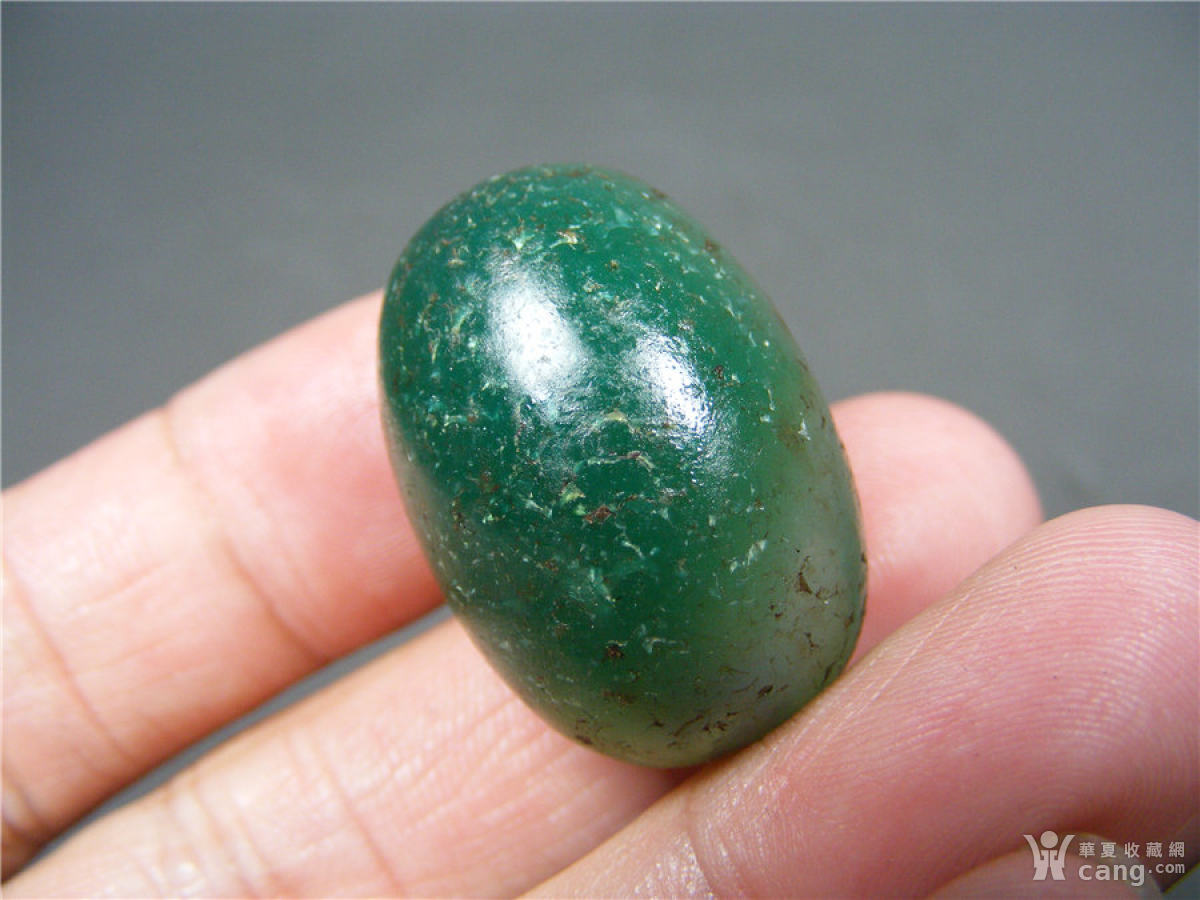 37 老西亚上百年的表面老风化纹漂亮的绿玛瑙大枣型珠