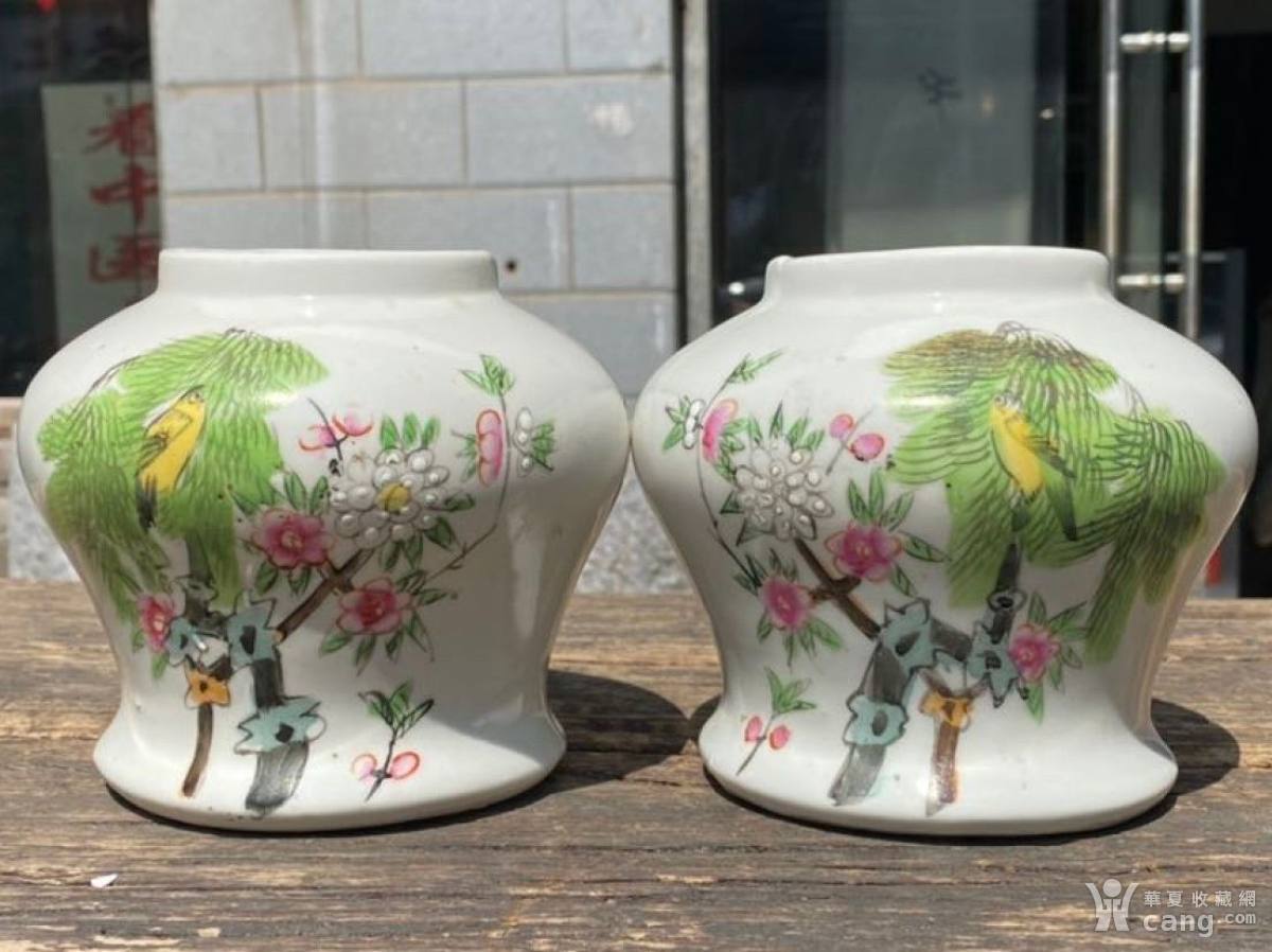 民国柳树黄莺粉彩罐一对