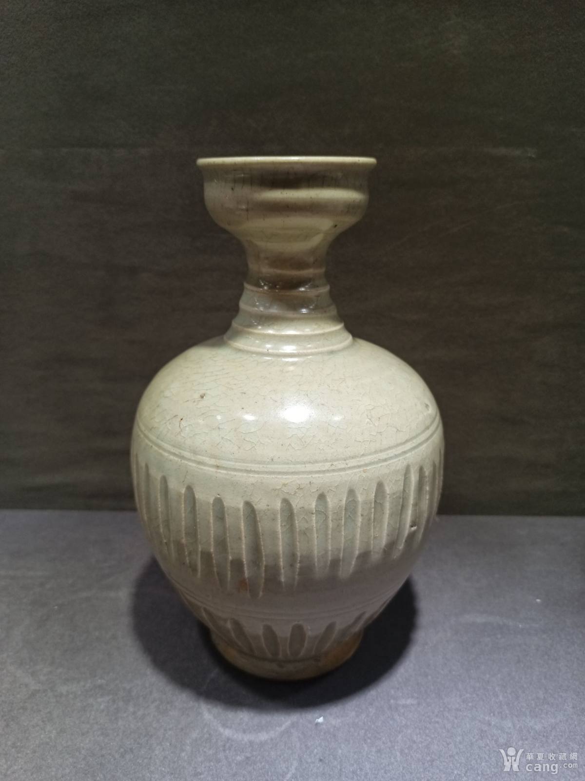 将乐窑青白釉条纹杯口梅瓶