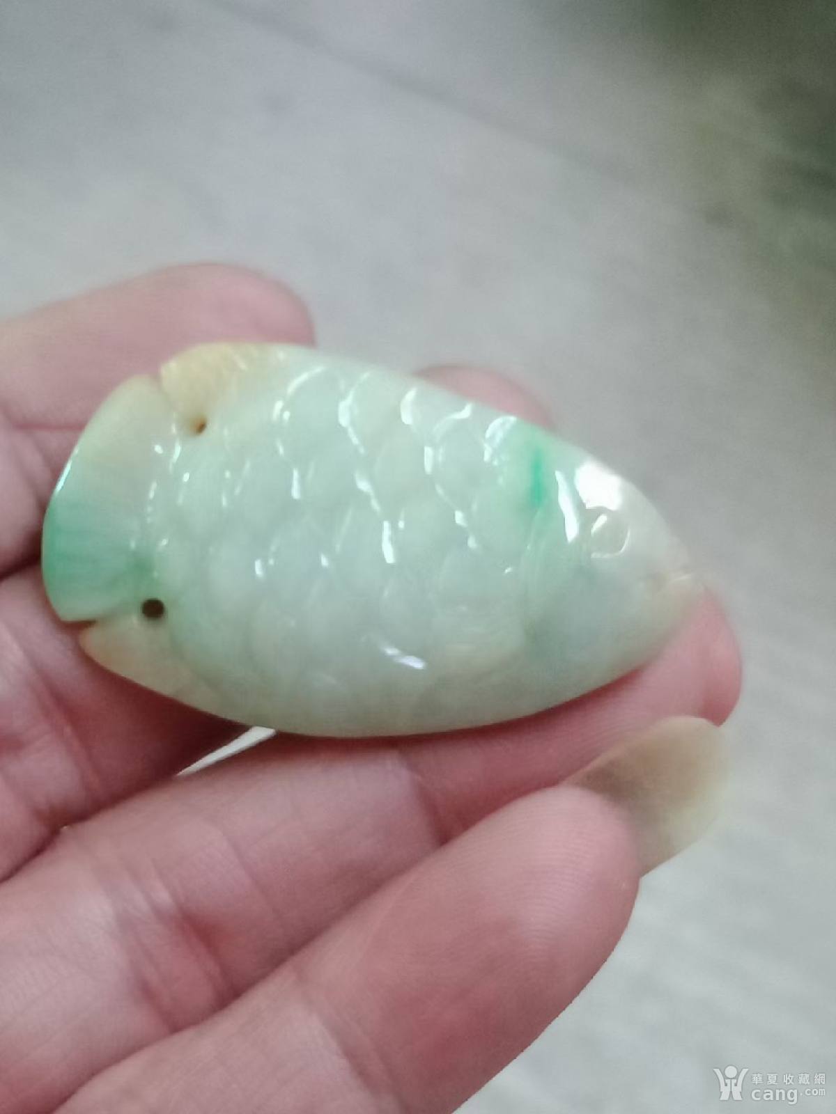 缅甸翡翠R66611-2A阳绿双彩年年有余挂件(送证书)