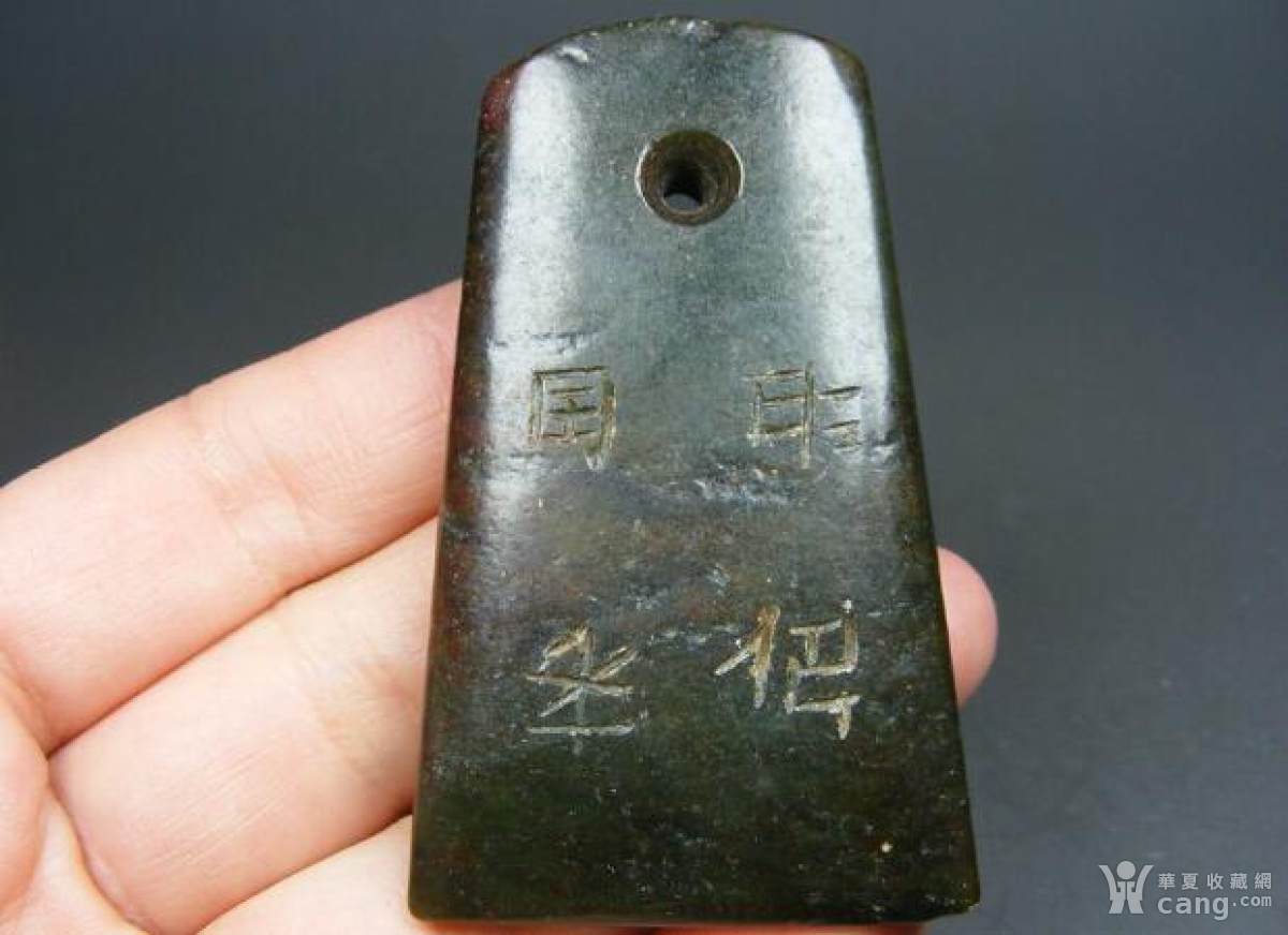 A07/15 44号和田青玉双面工带金文厚实大玉斧