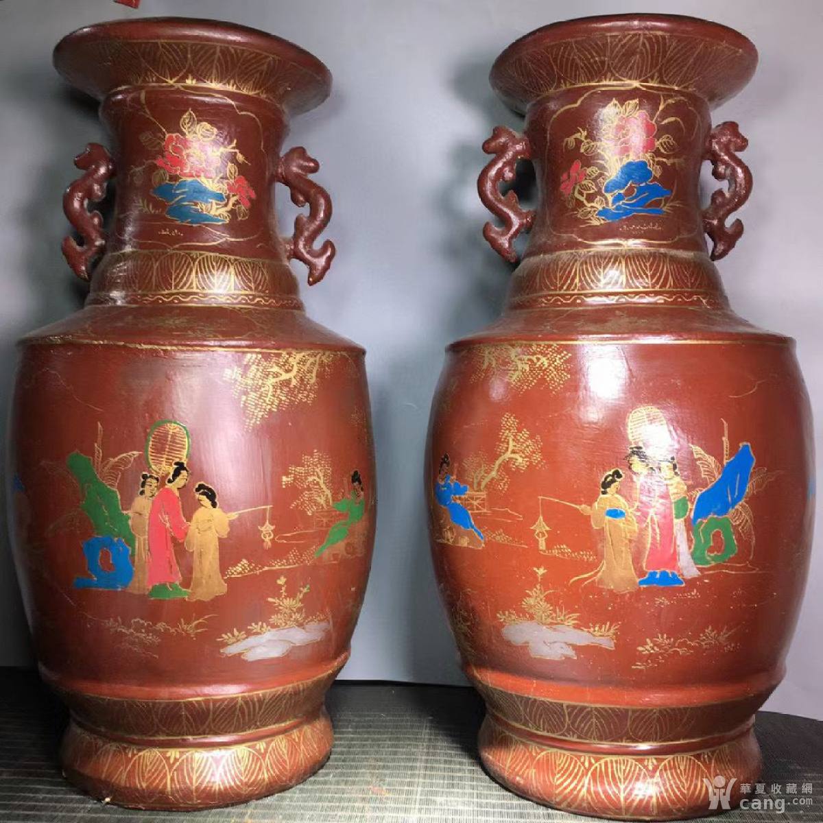 木胎漆器描金花瓶摆件,高60厘米,口径23厘米,宽32厘米,