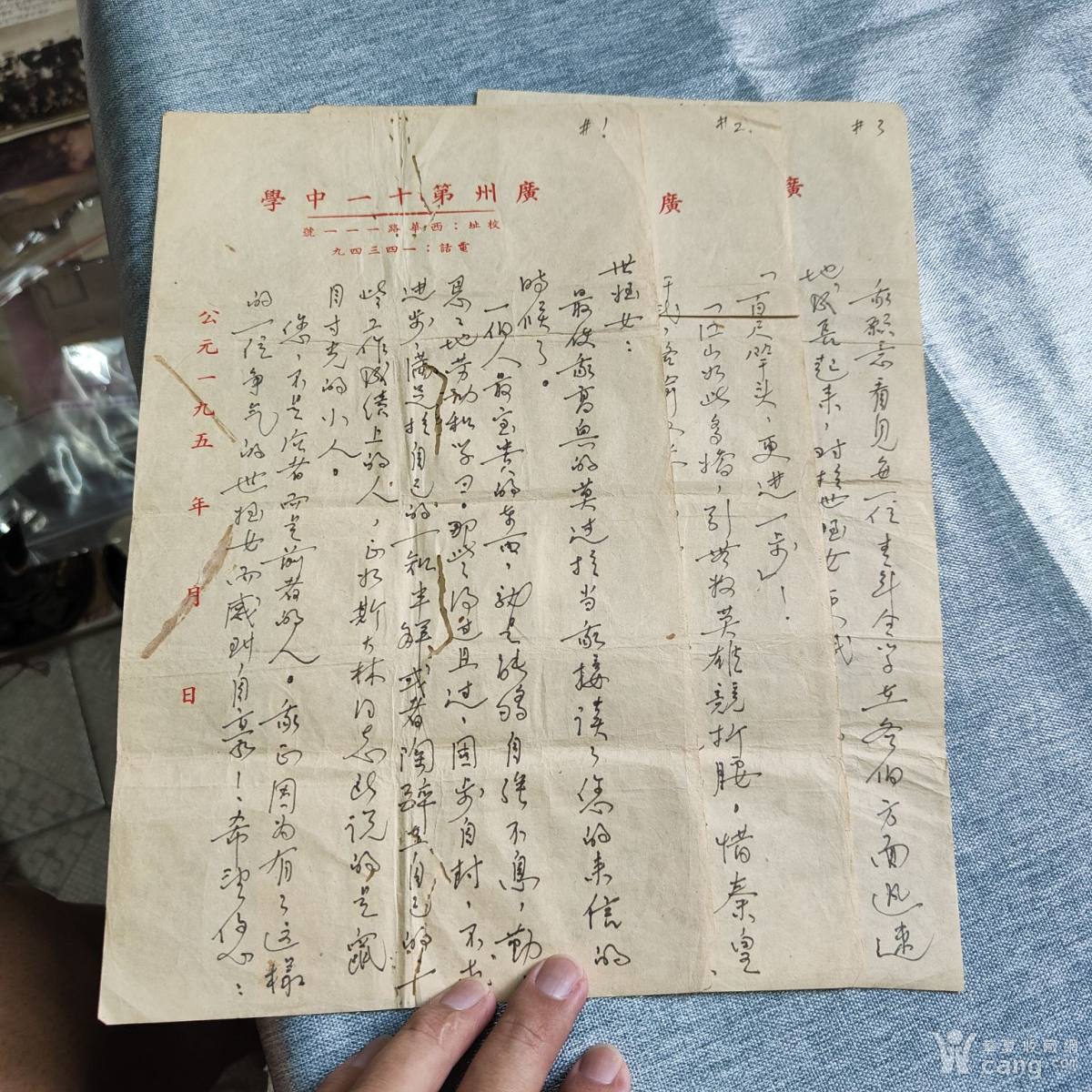 五十年代广州市第十一中学老信札三张