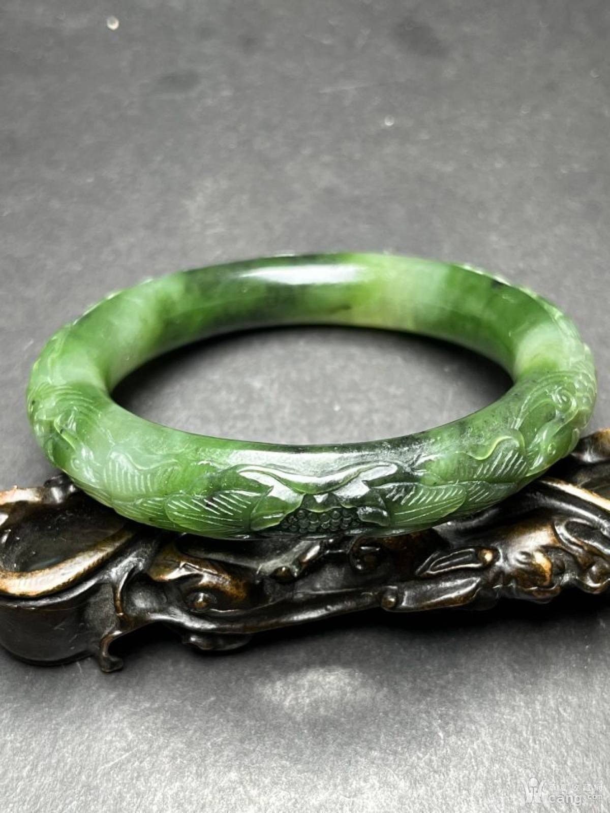 天然和田碧玉手镯雕刻凤凰牡丹!(可开证书)