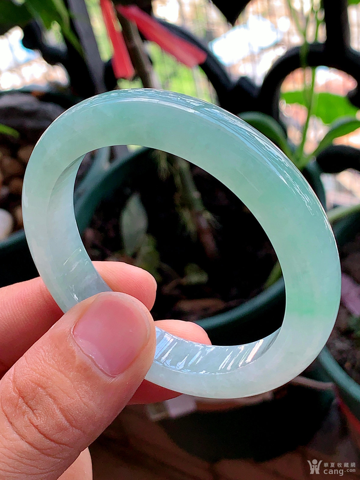 缅甸天然翡翠A货冰透水润飘花宽边手镯55.5圈口