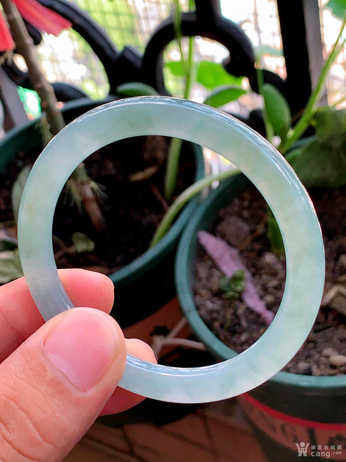 缅甸天然翡翠A货冰透水润飘花圆条手镯54.5圈口