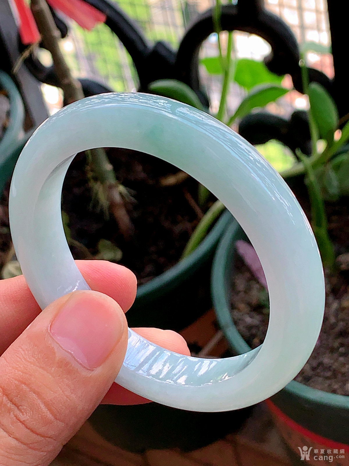 缅甸天然翡翠A货冰透水润带绿宽边手镯59.3圈口