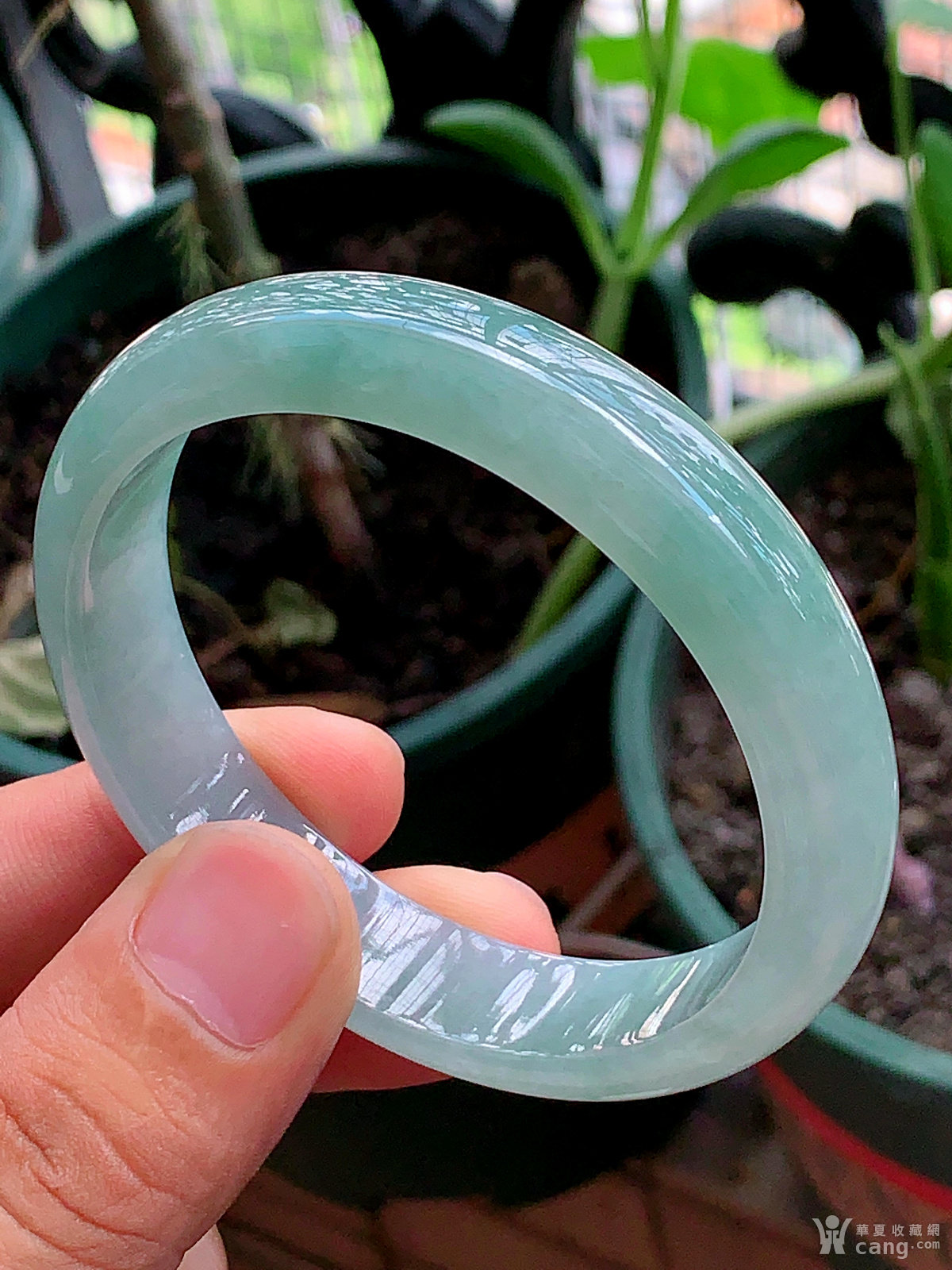 缅甸天然翡翠A货冰透水润飘花宽边手镯59.6圈口