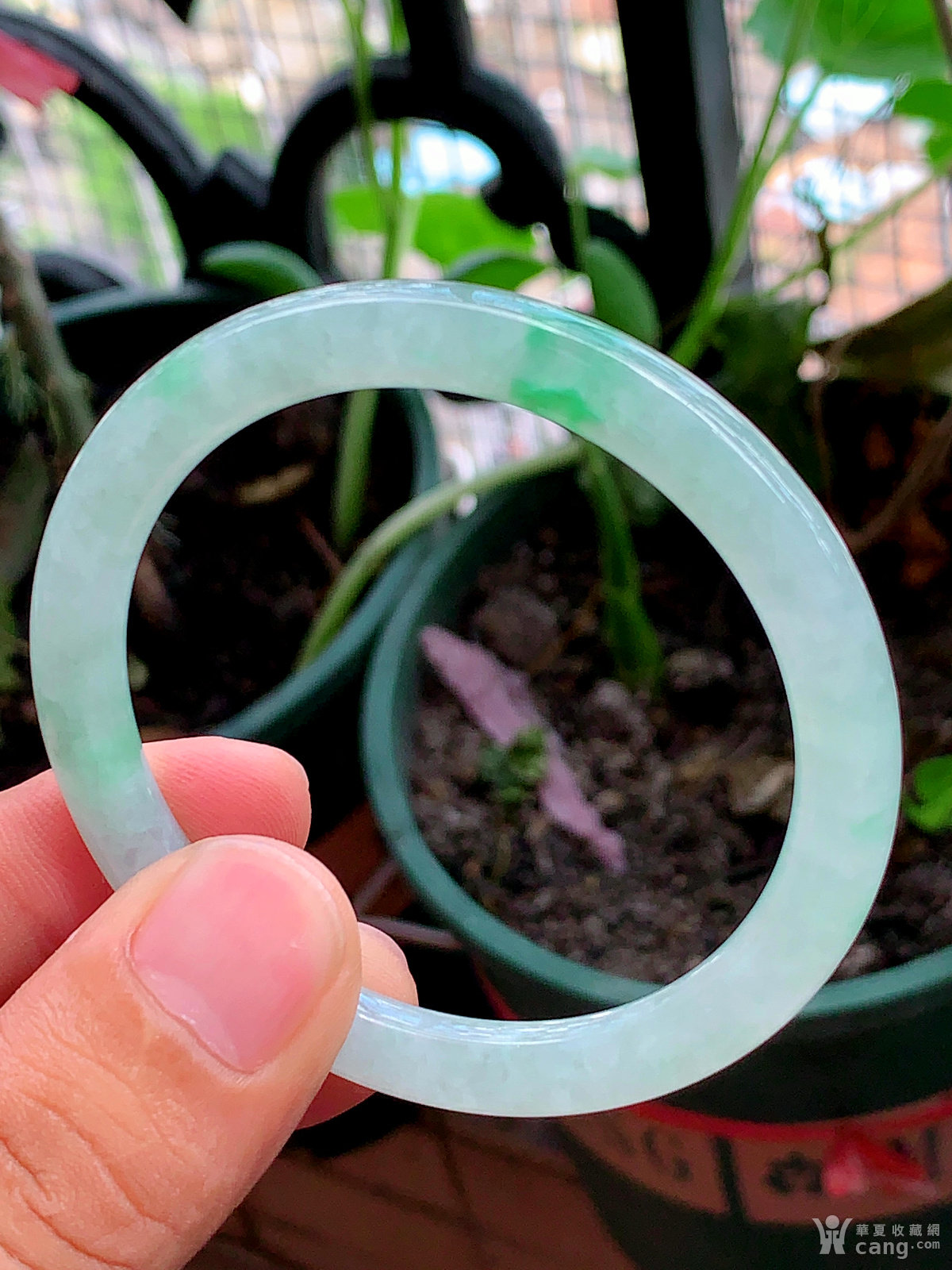 缅甸天然翡翠A货冰透水润飘花圆条手镯55.3圈口