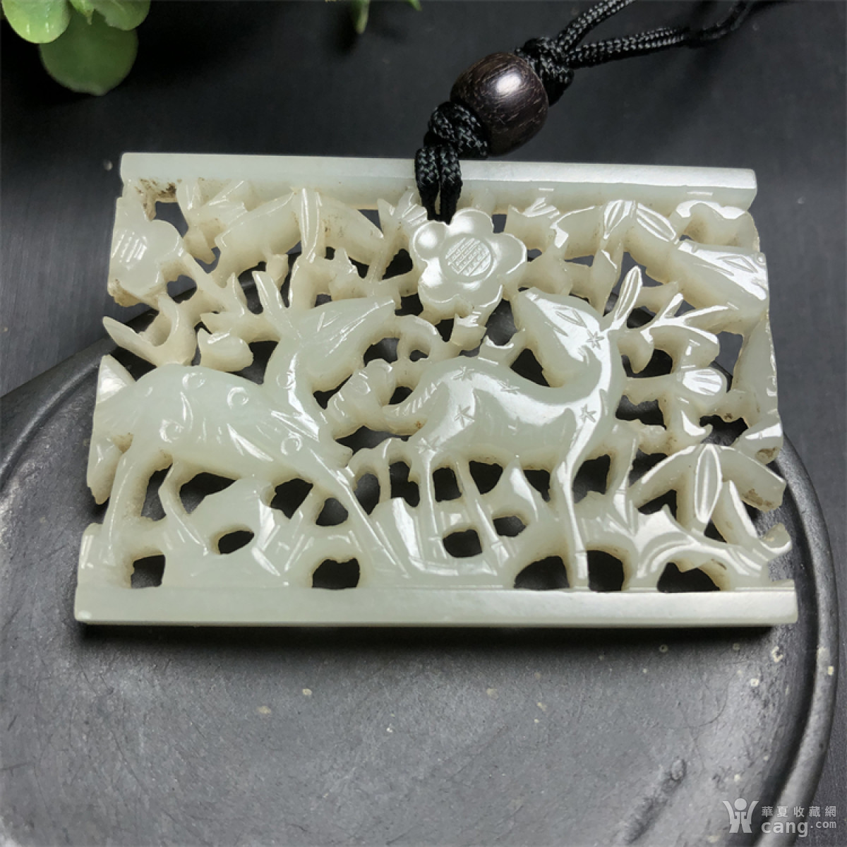 F363 明代和田白玉镂空雕刻双鹿带板挂佩