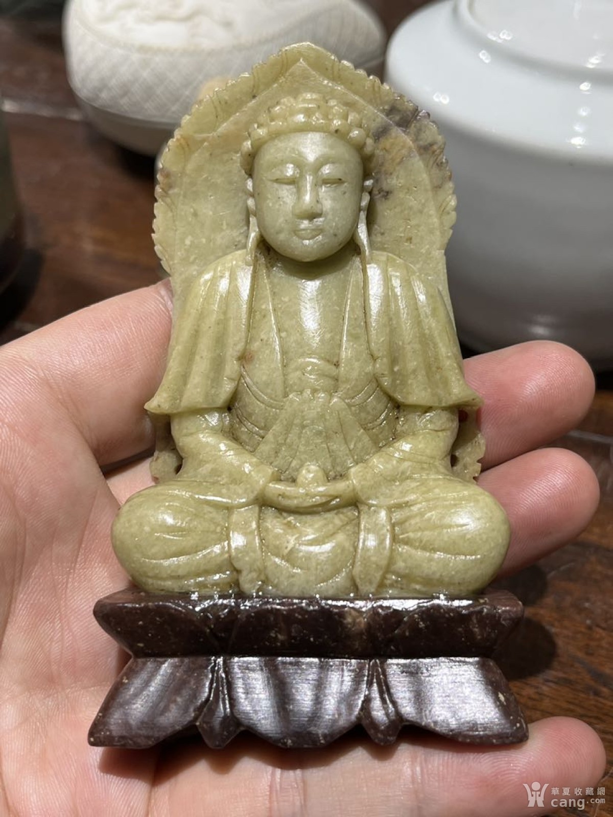 解放后寿山石雕佛像 瑕疵如下: 1.两边有洞的地方都有点磕