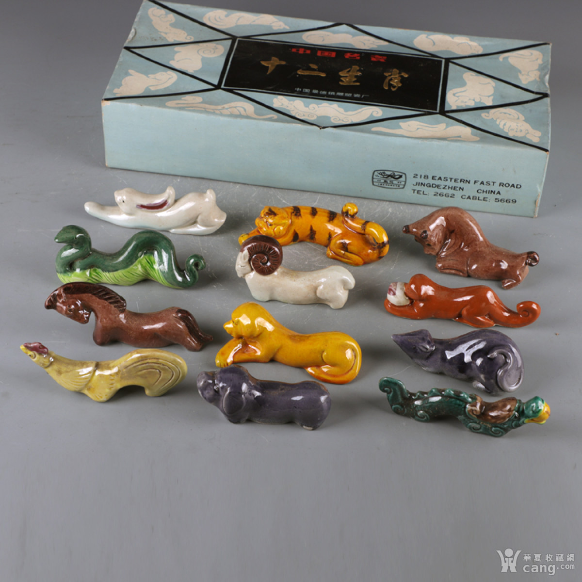 老厂货瓷器 雕塑摆件--粉彩12生肖一套