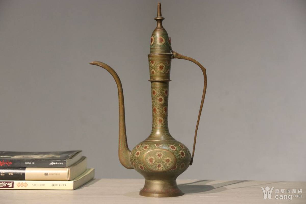 手工制作~纯铜錾刻花卉老酒壶;尺寸:高33,20/9厘米。重