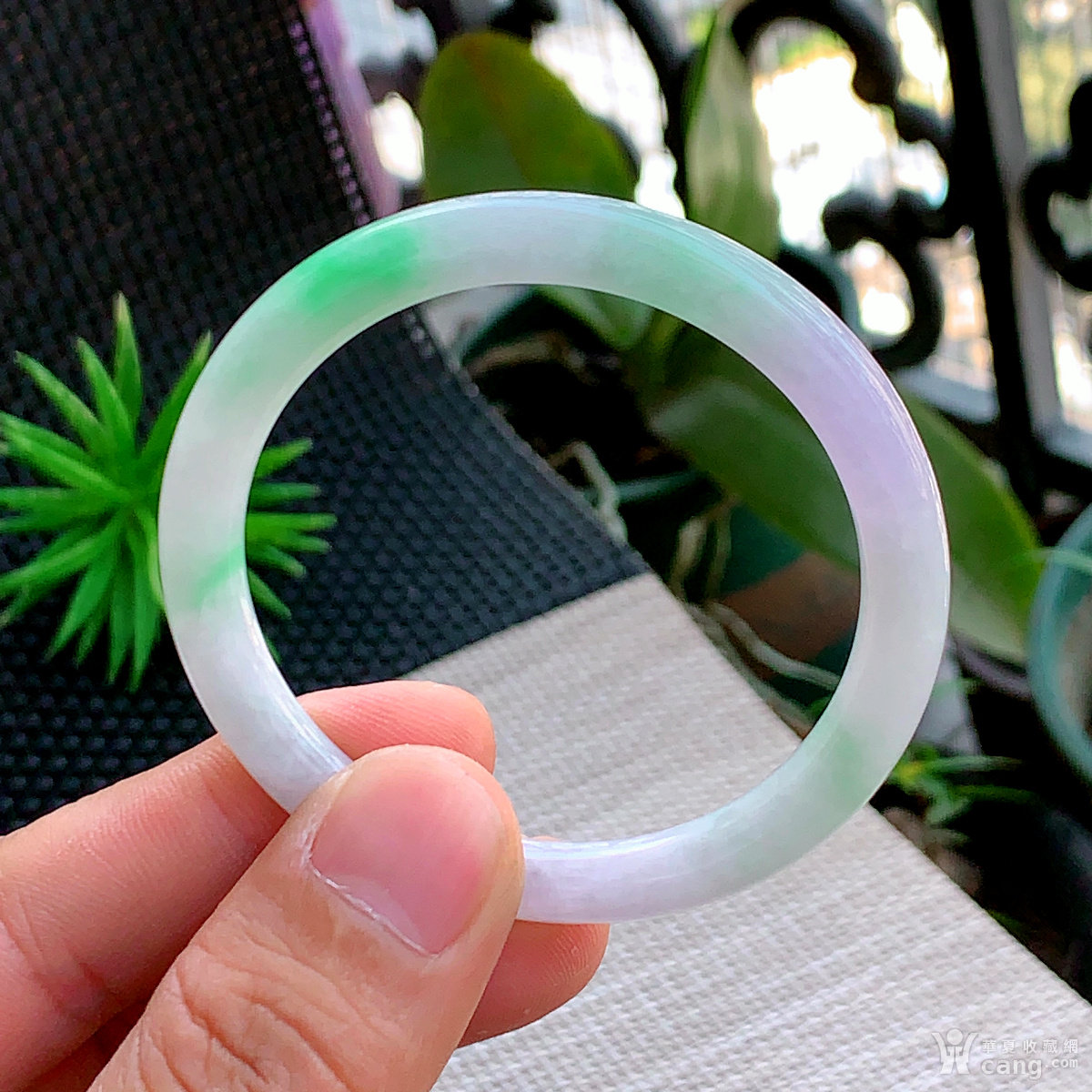 缅甸天然翡翠A货冰透水润春带彩圆条手镯53.5圈口