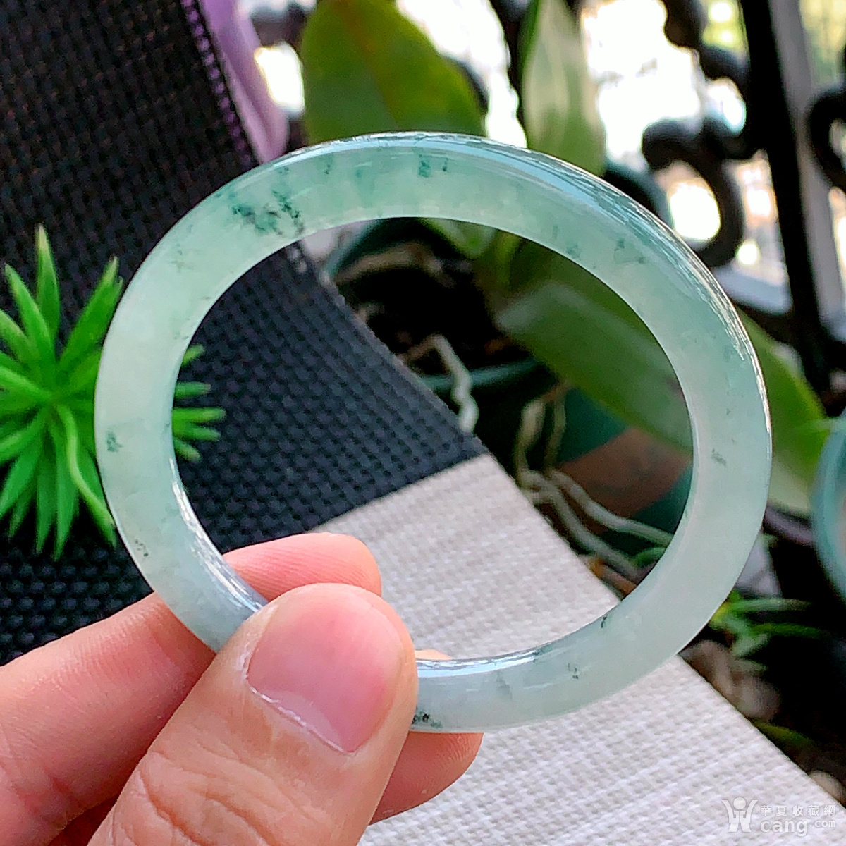 缅甸天然翡翠A货冰透水润飘绿圆条手镯55.2圈口