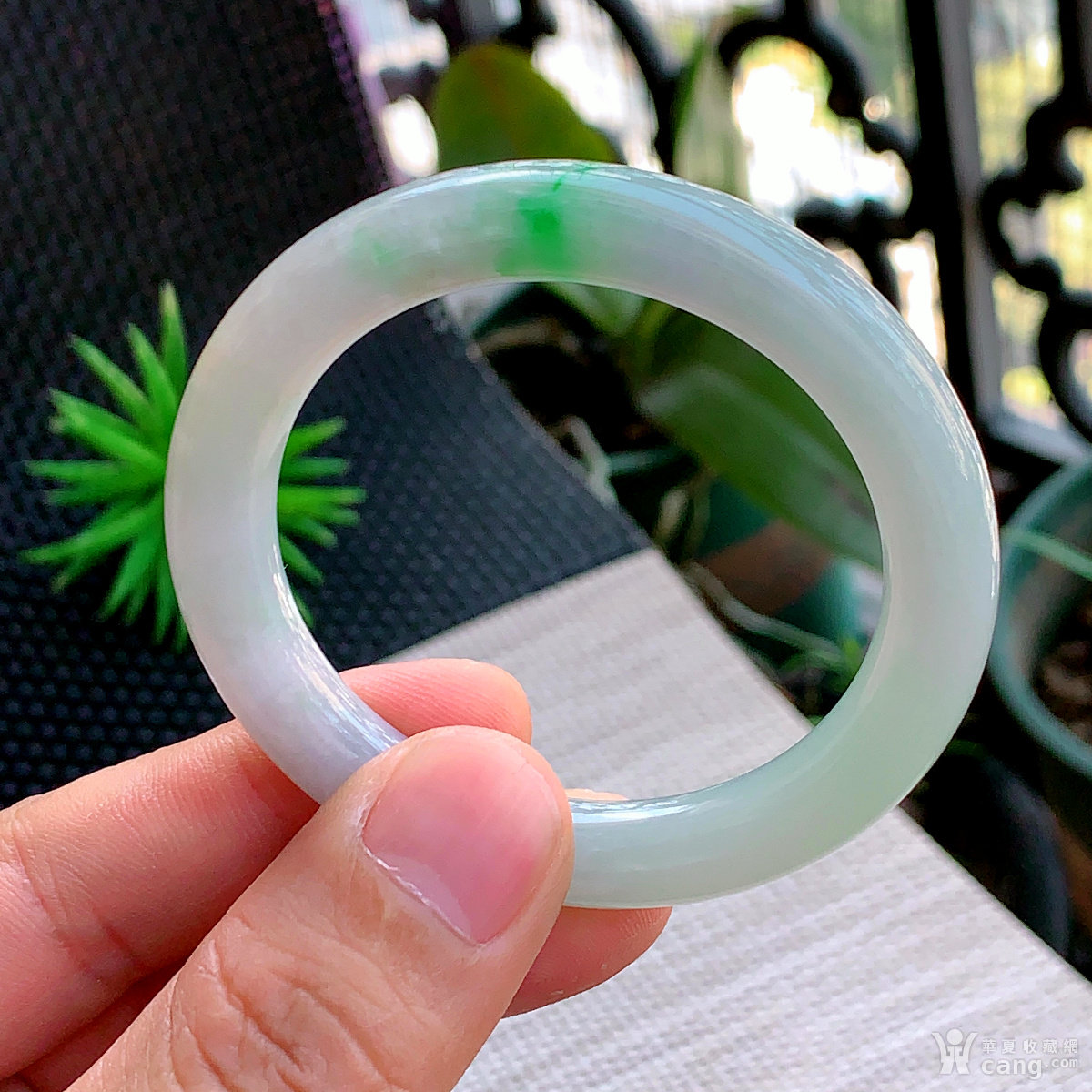 缅甸天然翡翠A货冰透水润飘绿宽边手镯57.5圈口