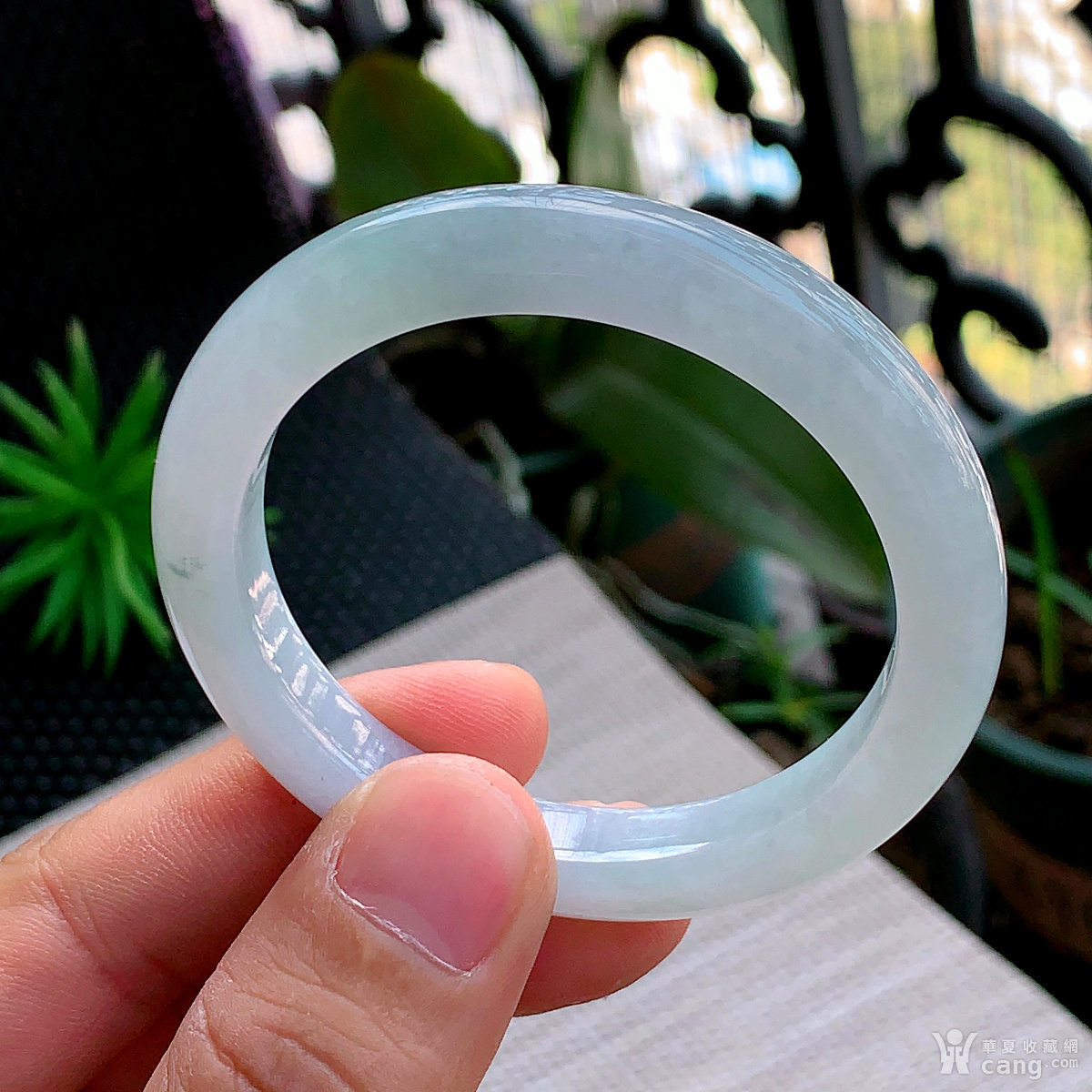 缅甸天然翡翠A货冰透水润飘绿宽边手镯54圈口