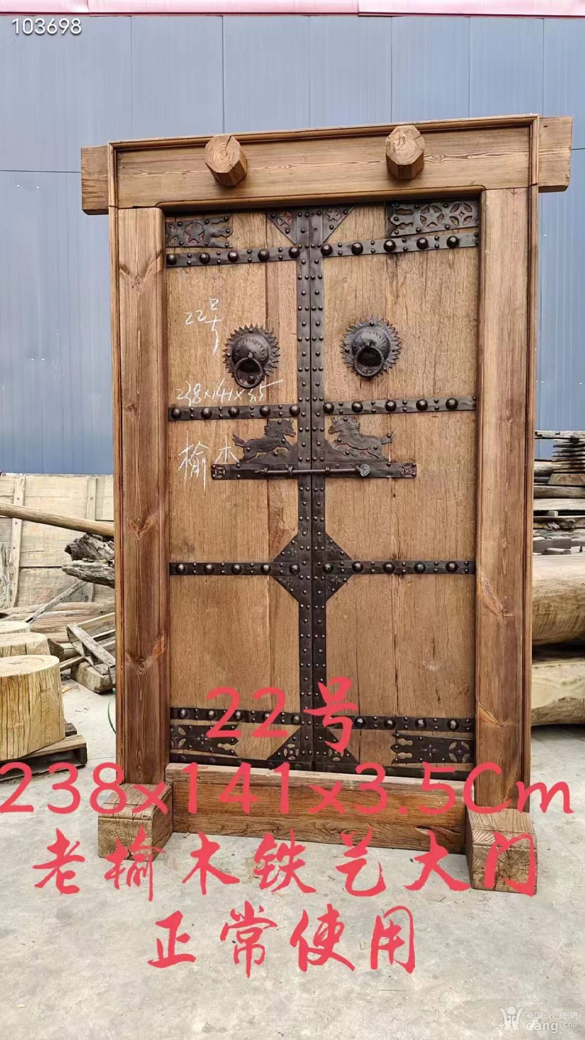 老榆木,铁艺大门一套,铁艺包老,古朴素雅,纹理清晰漂亮,已清