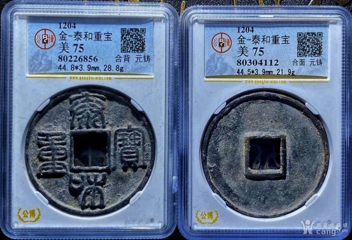 少见包浆元铸泰和重宝合背合面一对两枚铜币公博评级75收藏