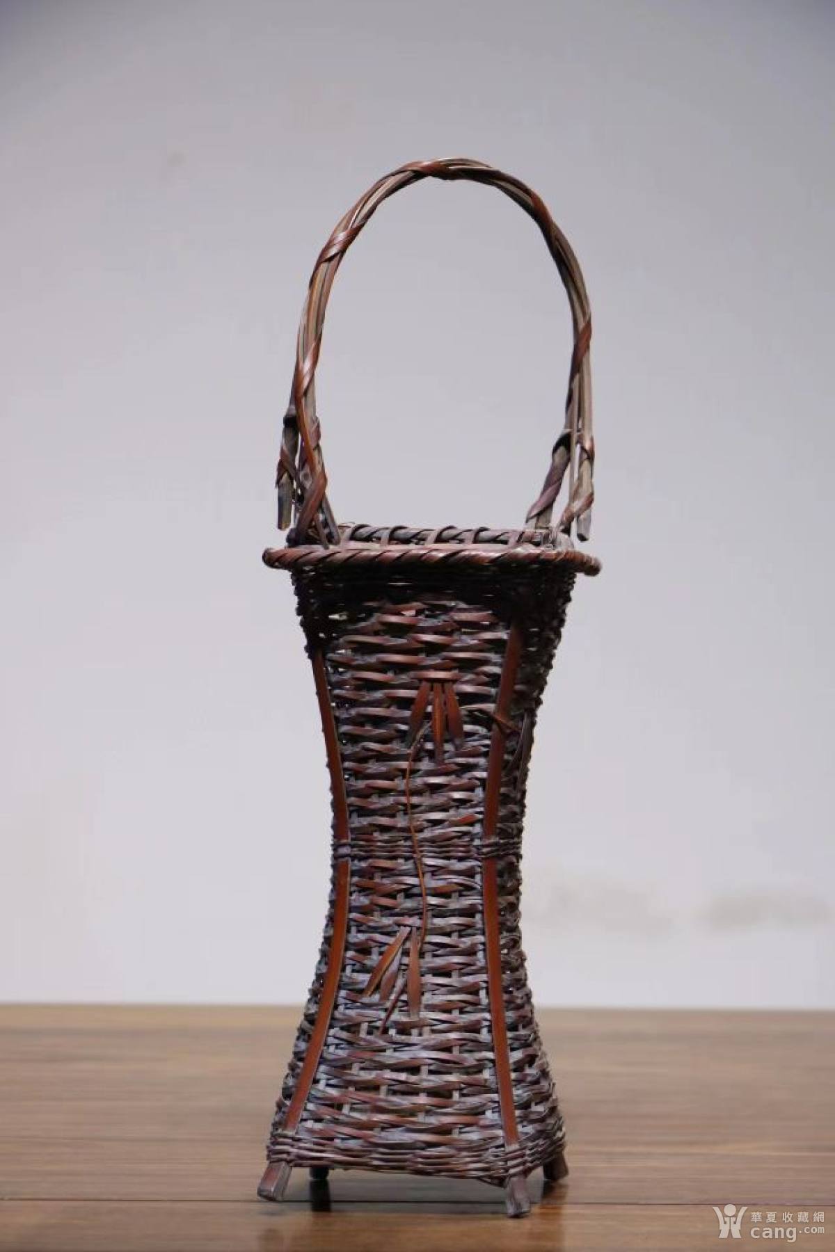 竹编花篮 此花篮整体以竹编制,束口丰肩,自肩部往下自然收缩,