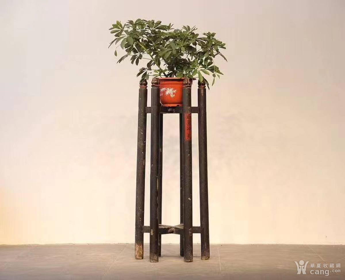 【旺气冲天】 折叠式花架,清中早期,批灰,榆木, 有一条腿