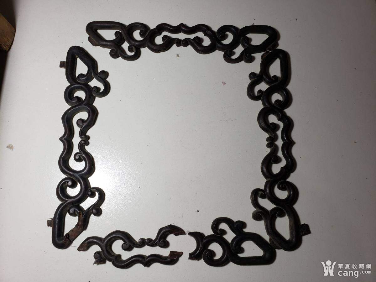老红木镂空如意纹花窗边框配件一套,清代