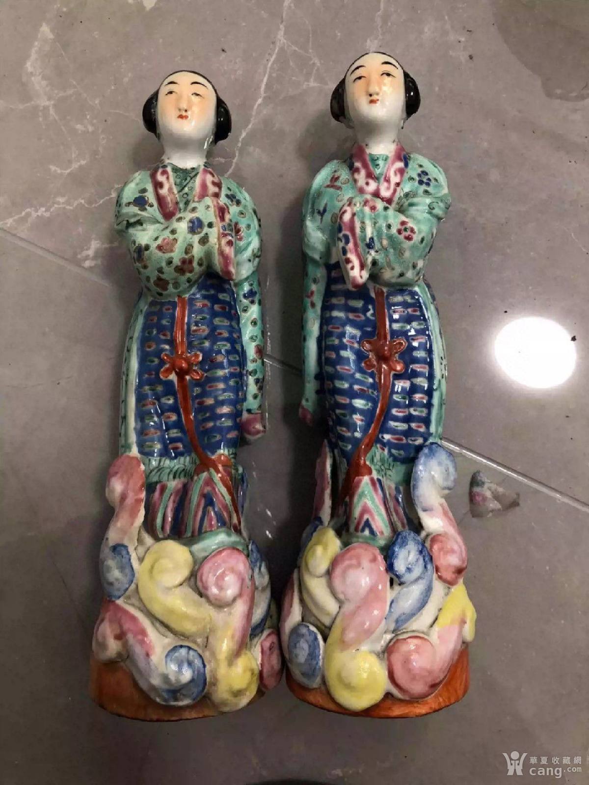 民国粉彩人物瓷塑一对