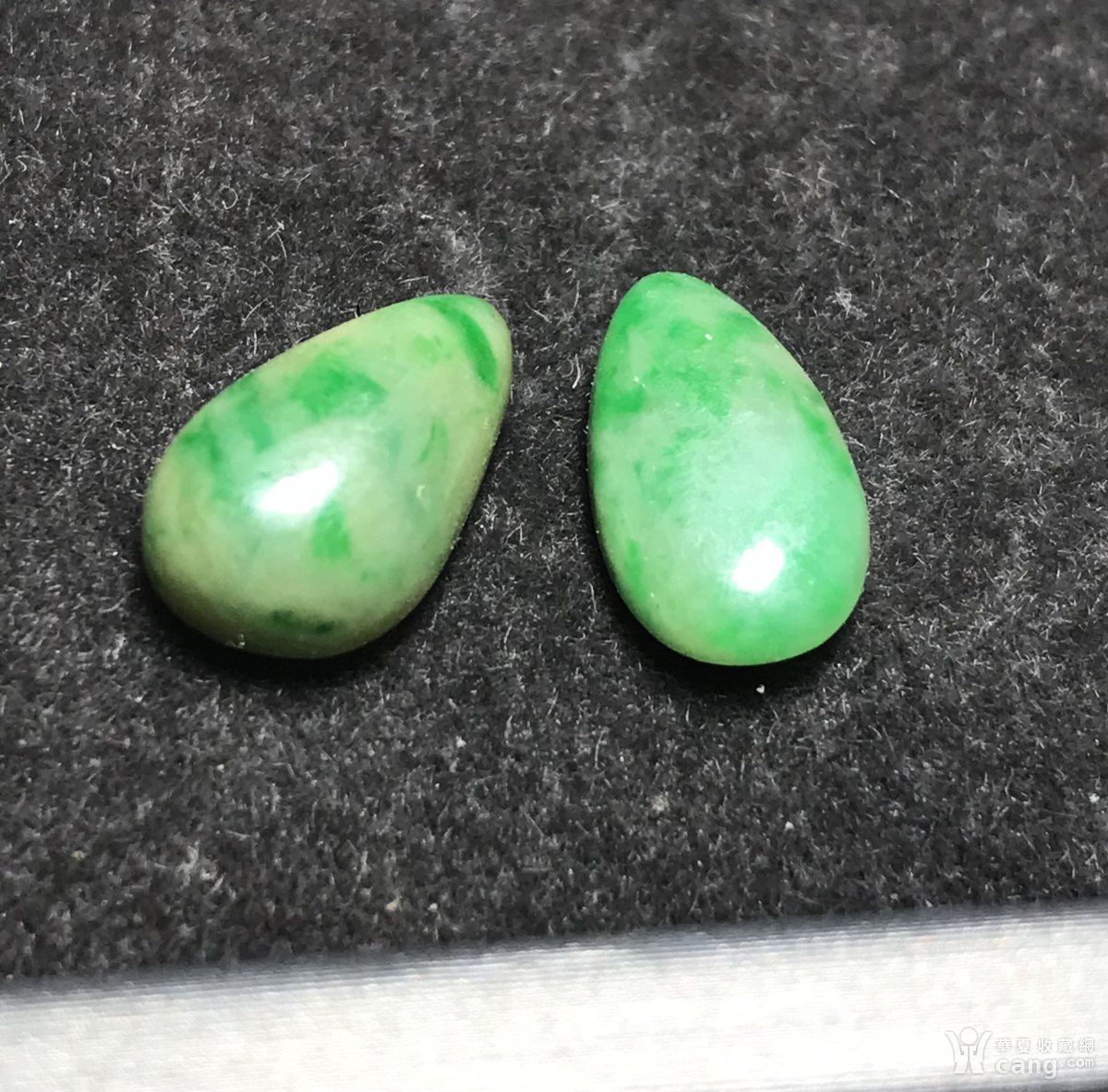 色辣!清~白底阳绿老翡翠~水滴耳坠镶嵌件