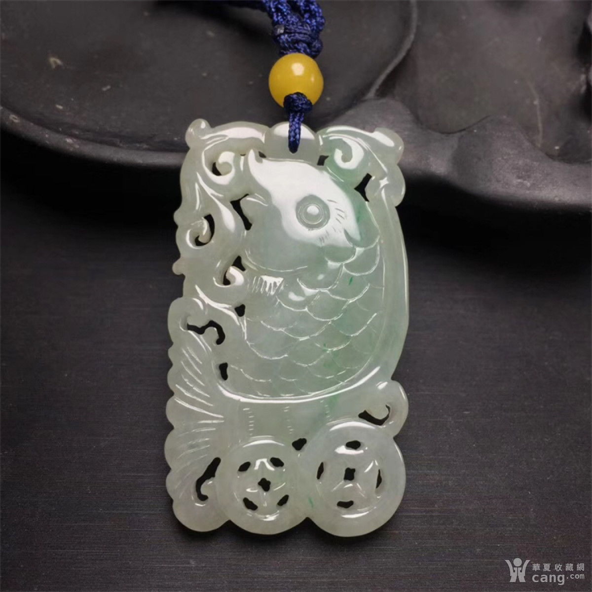 P379创汇期糯冰种飘绿翡翠鲤鱼金钱吊坠