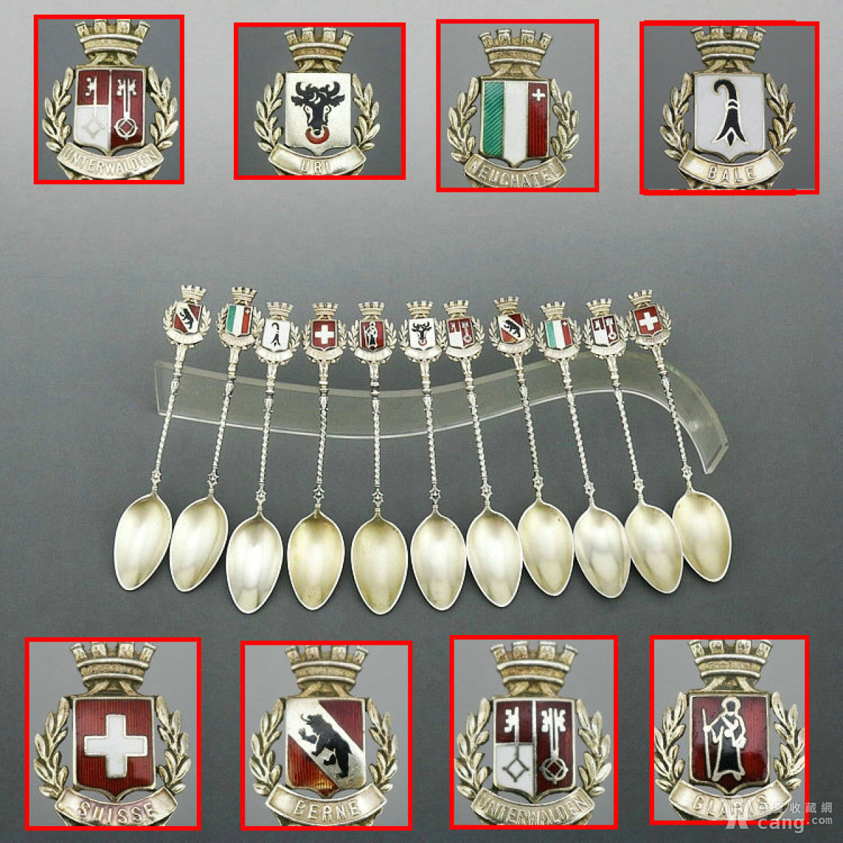 【西洋古董银器】瑞士各城市徽章珐琅纯银鎏金纪念甜品勺