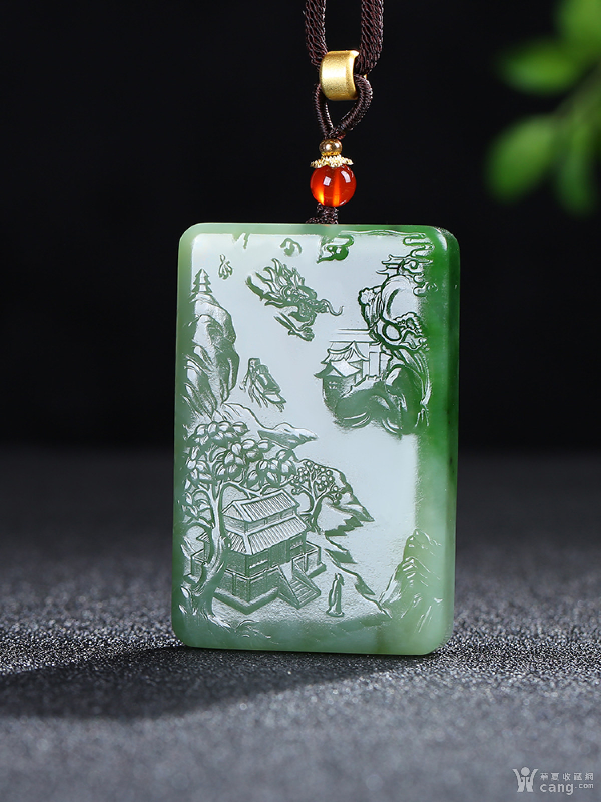 [龙佑一方]王朝安和田玉碧玉生肖龙山水牌子吊坠76.19g