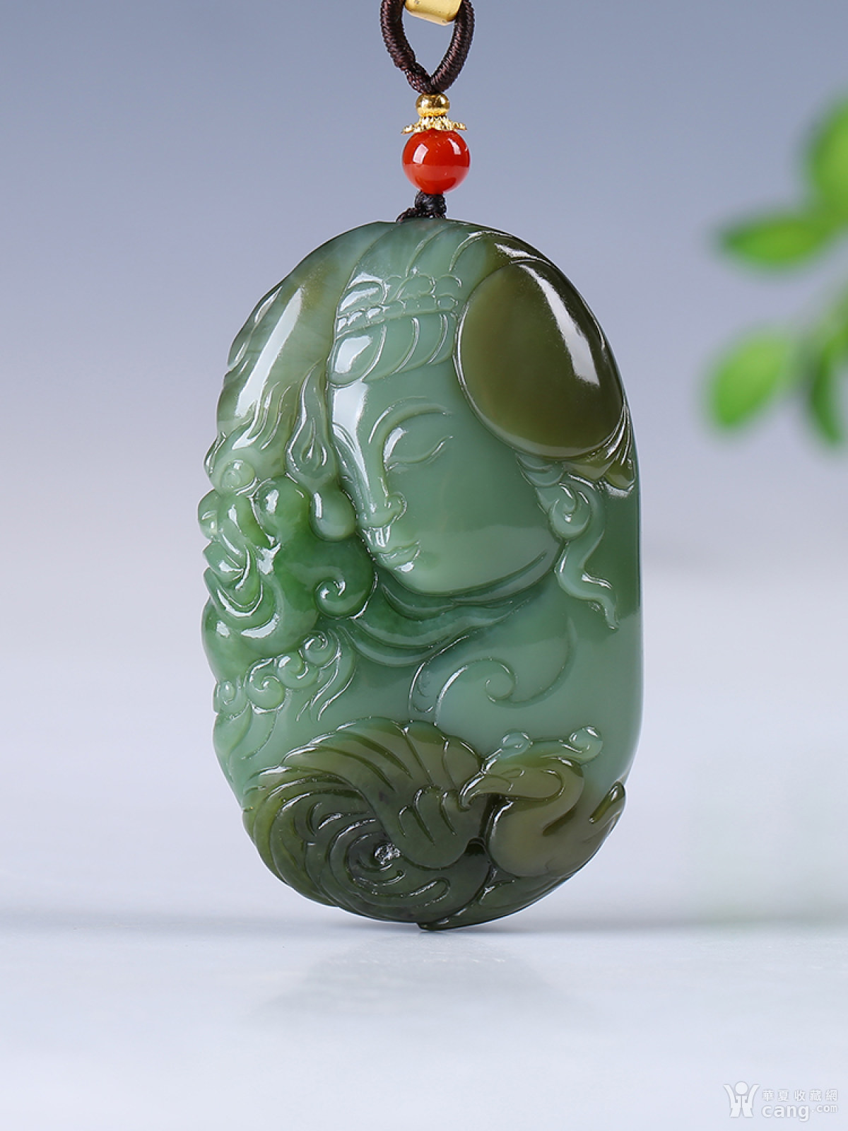 【一念之间】和田玉碧玉观音莲花挂件吊坠92.33g