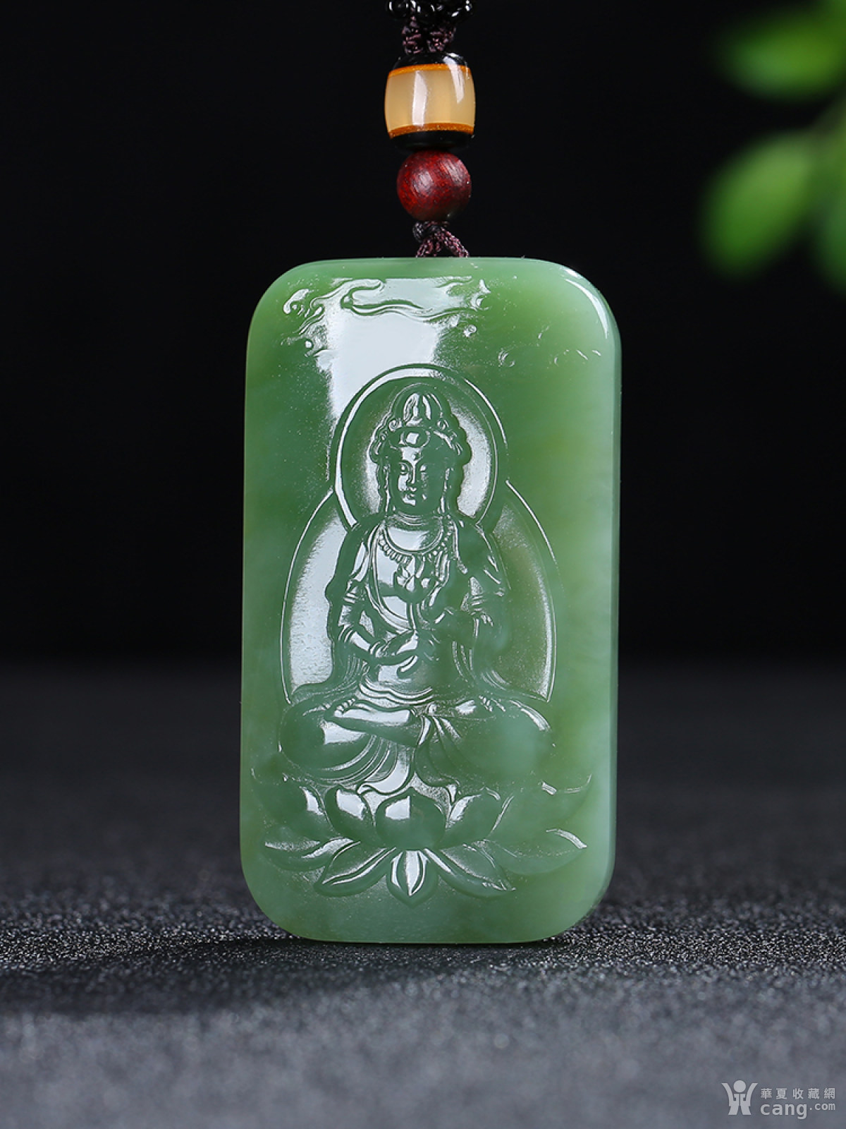[普渡众生俄料老坑碧玉观音莲花仿古牌子挂件吊坠47.83g